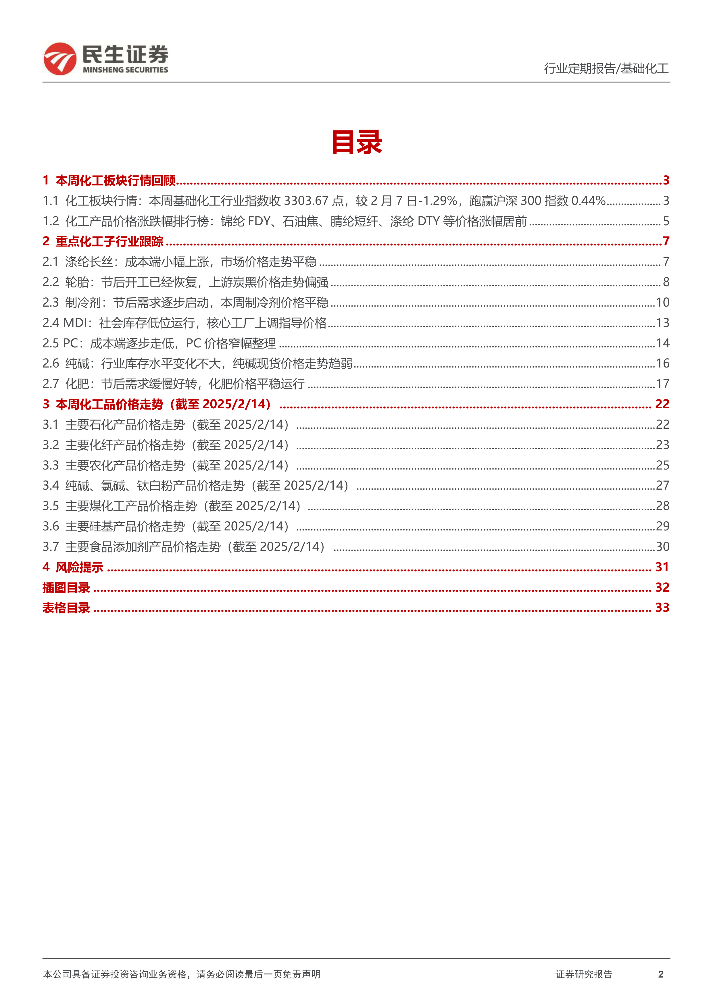 本报告详细分析了2025年2月10日至2025年2月16日期间化工行业及相关子行业的情况,主要内容包括: