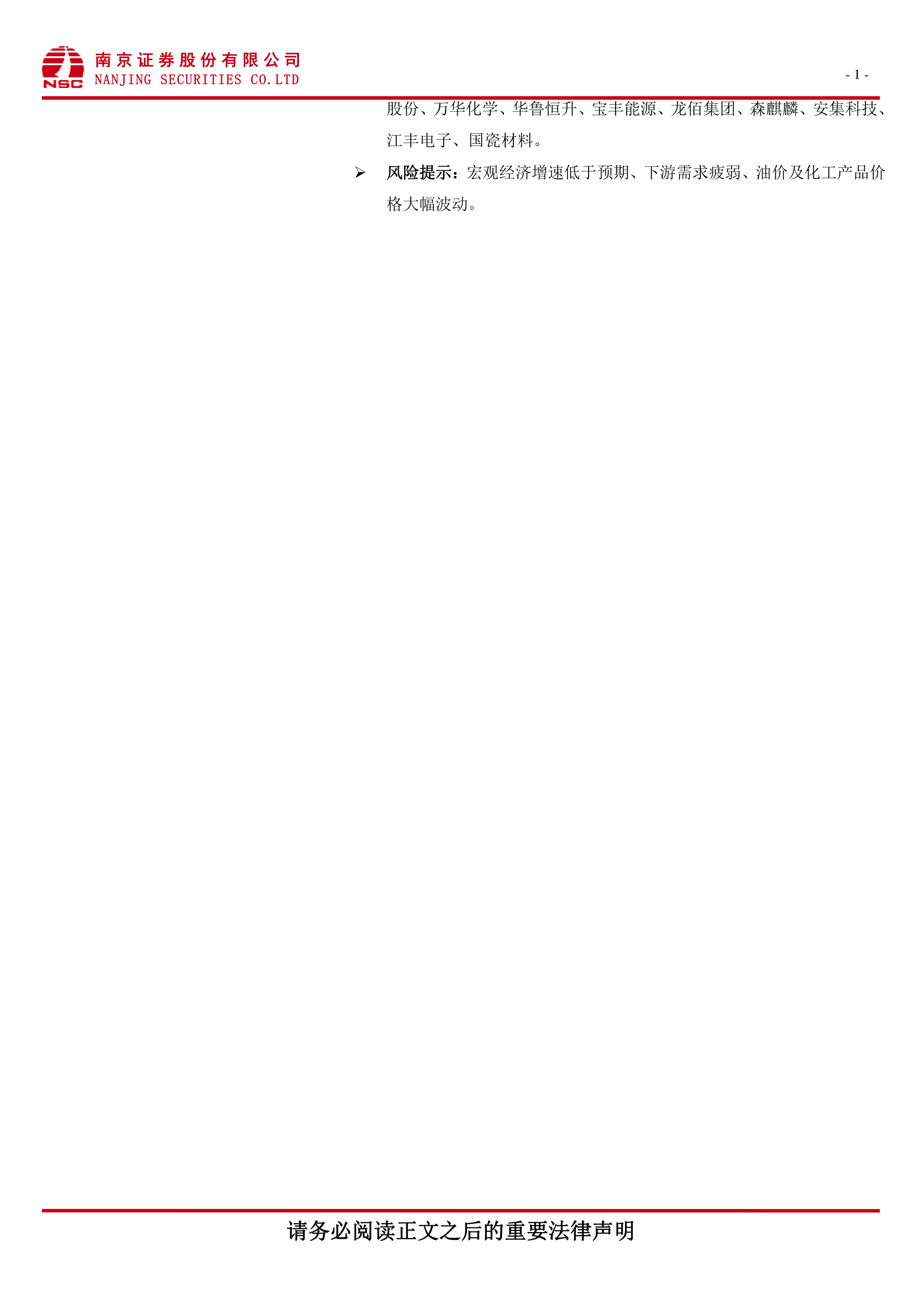 报告提示投资者需关注宏观经济增速低于预期、下游需求疲弱、油价及化工产品价格大幅波动等风险。