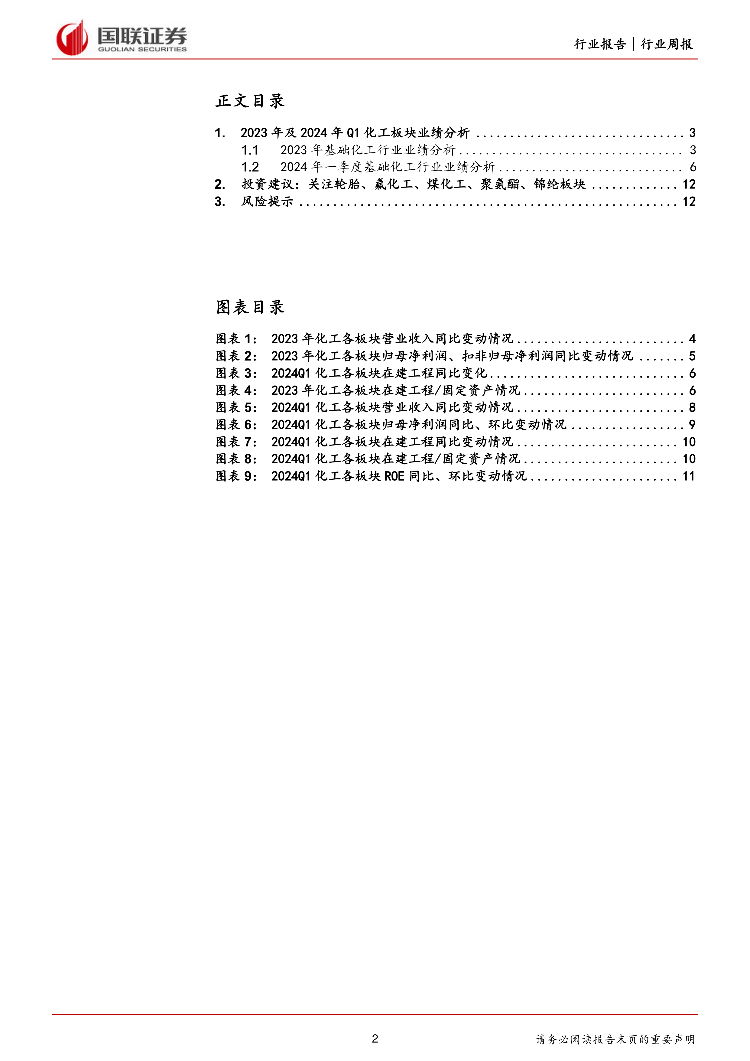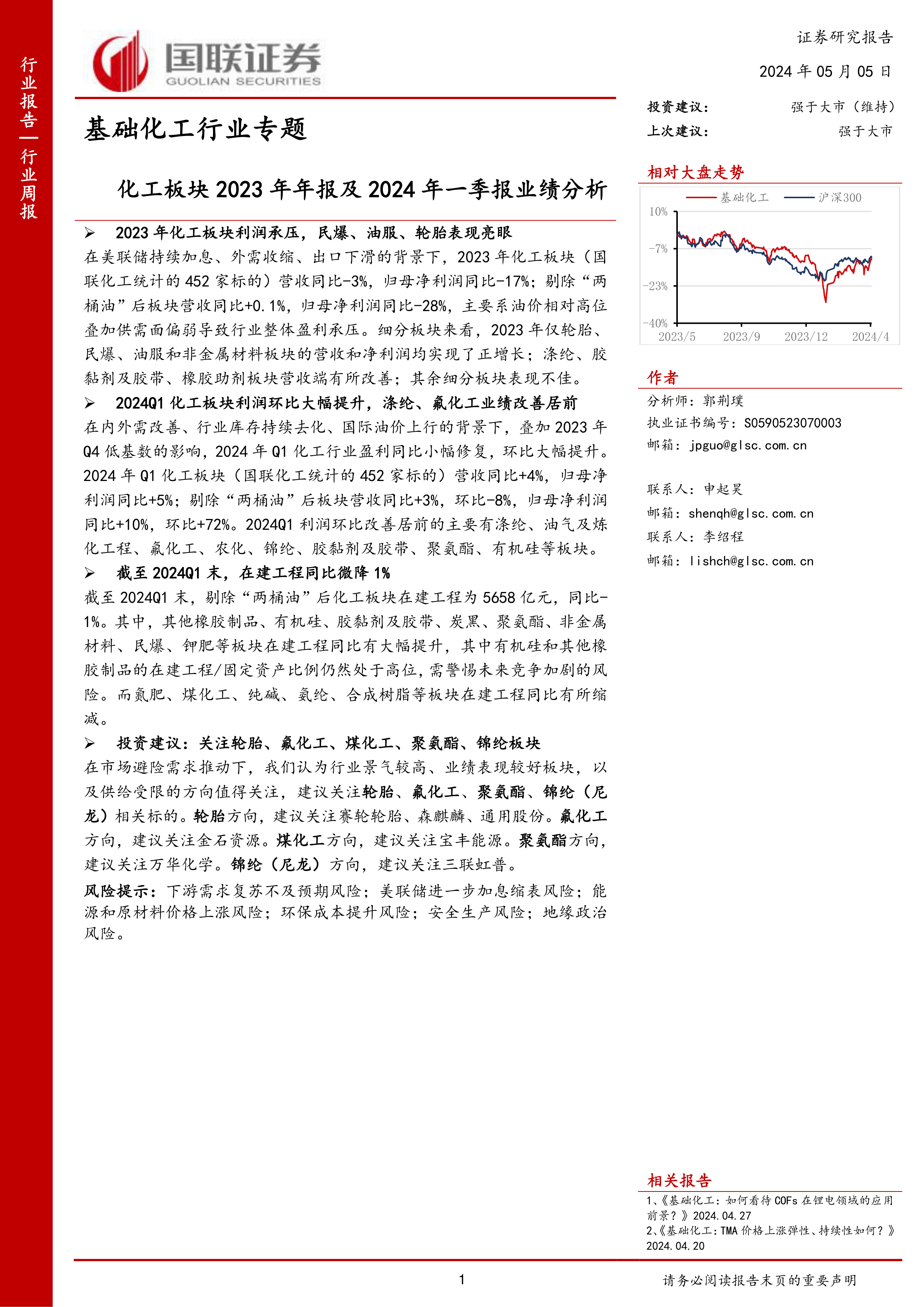 基础化工行业专题:基础化工行业专题化工板块2023年年报及2024年一季报业绩分析