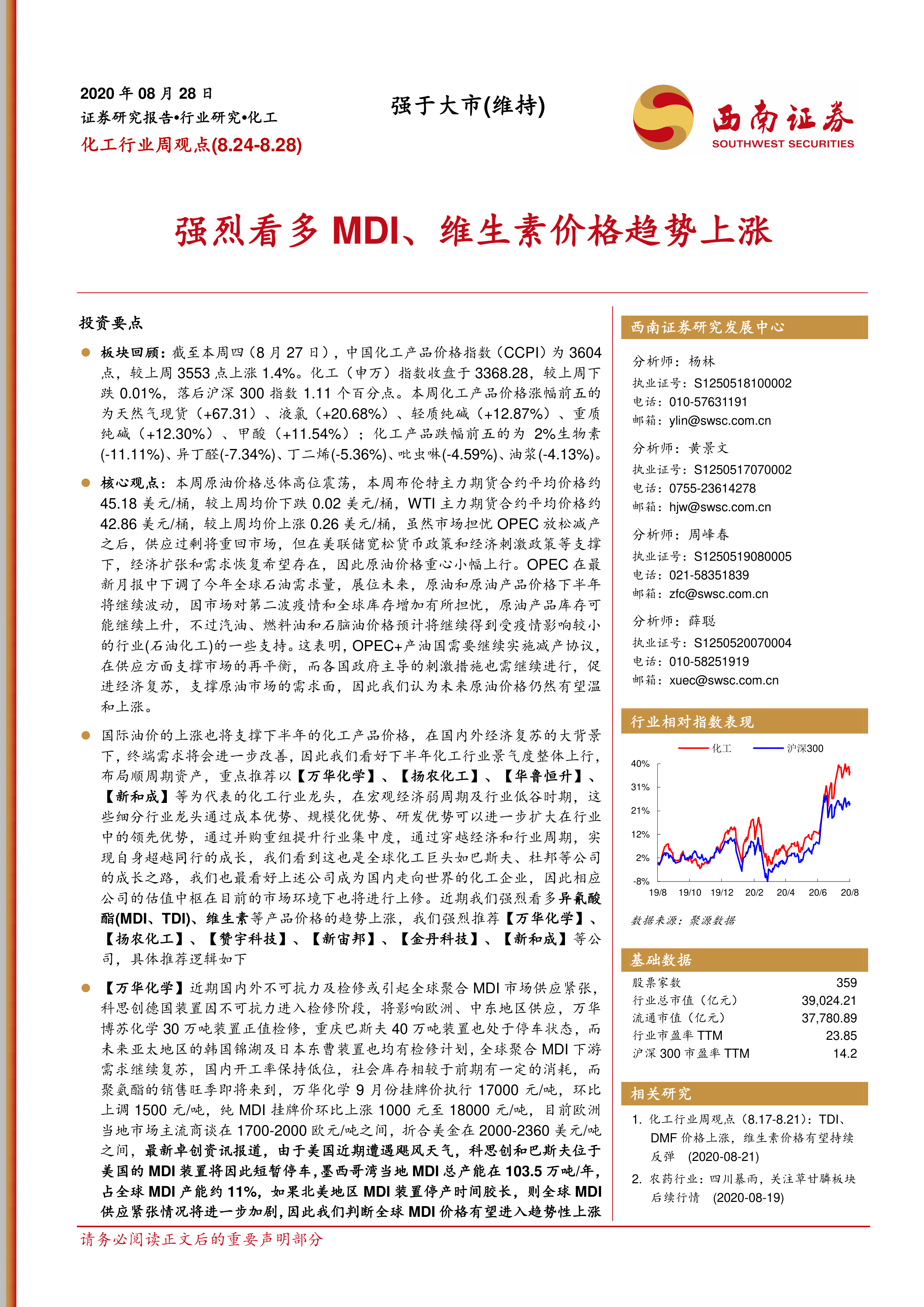 本报告详细分析了2020年8月24日至28日期间化工行业的表现,并对多个化工子板块进行了深入研究。