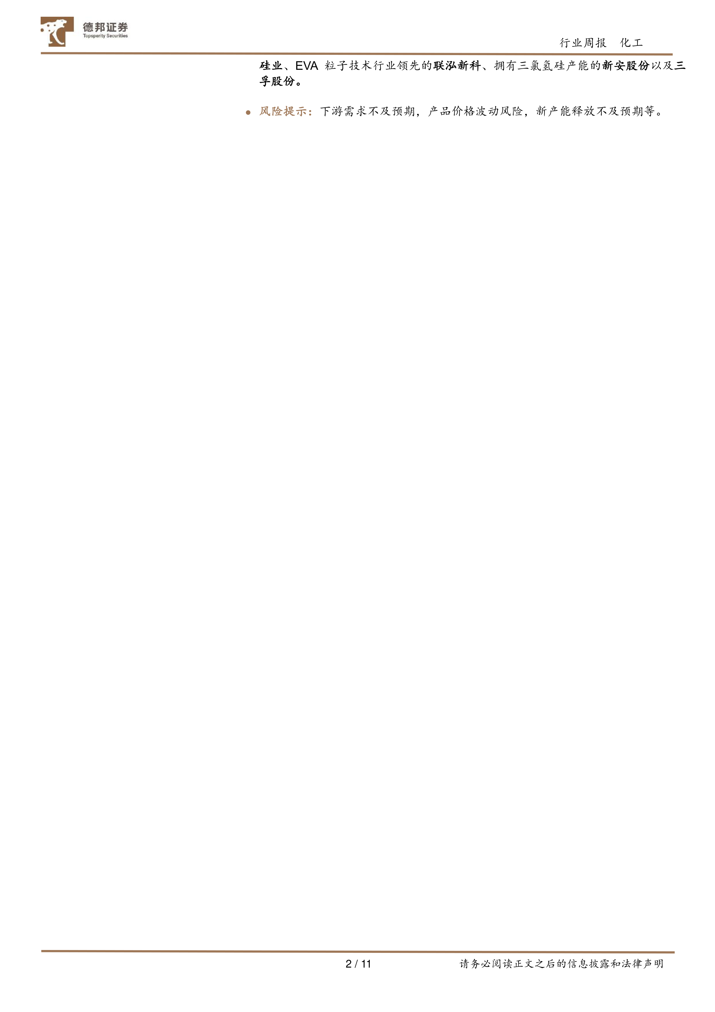风险提示:下游需求不及预期,产品价格波动风险,新产能释放不及预期等。