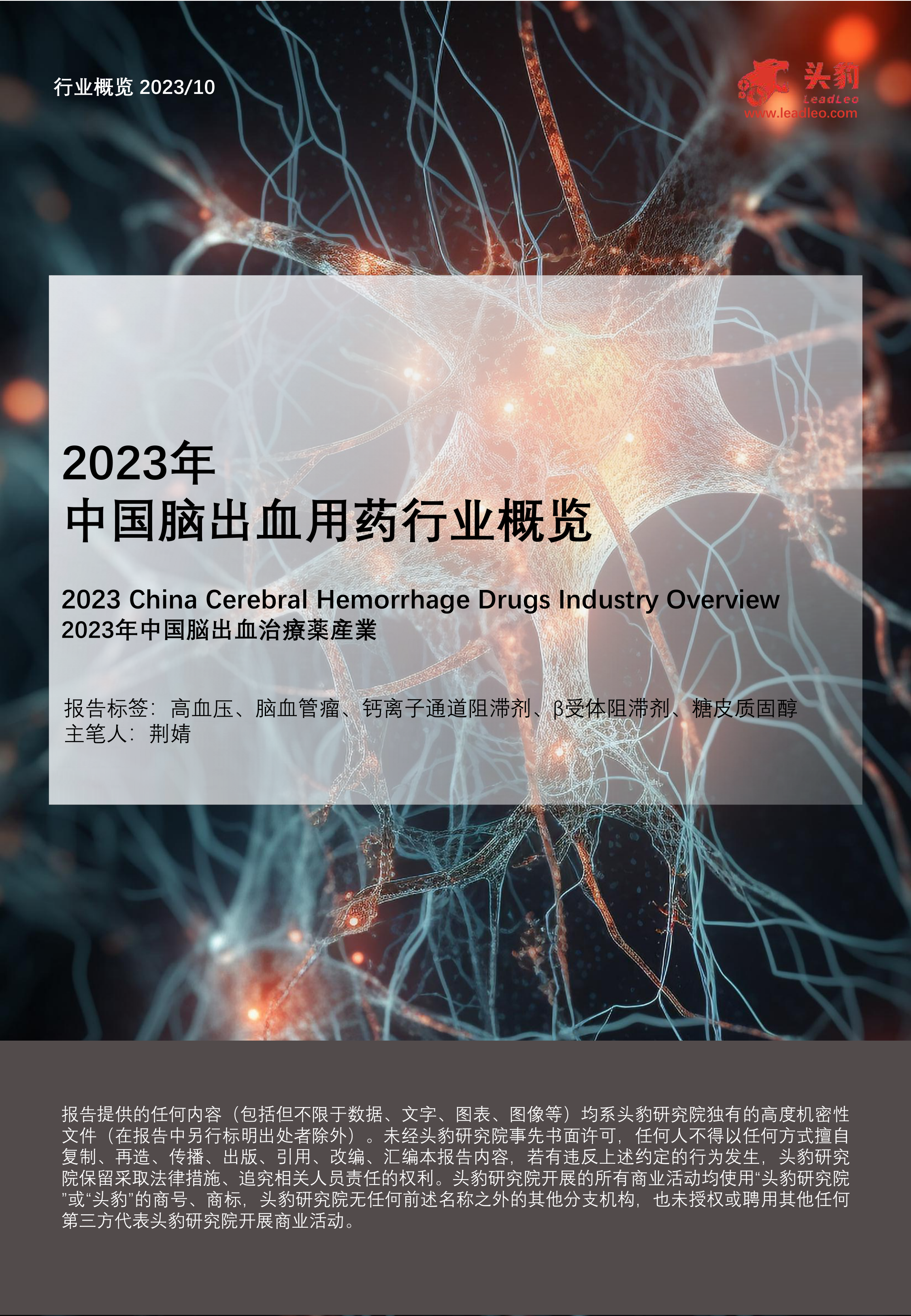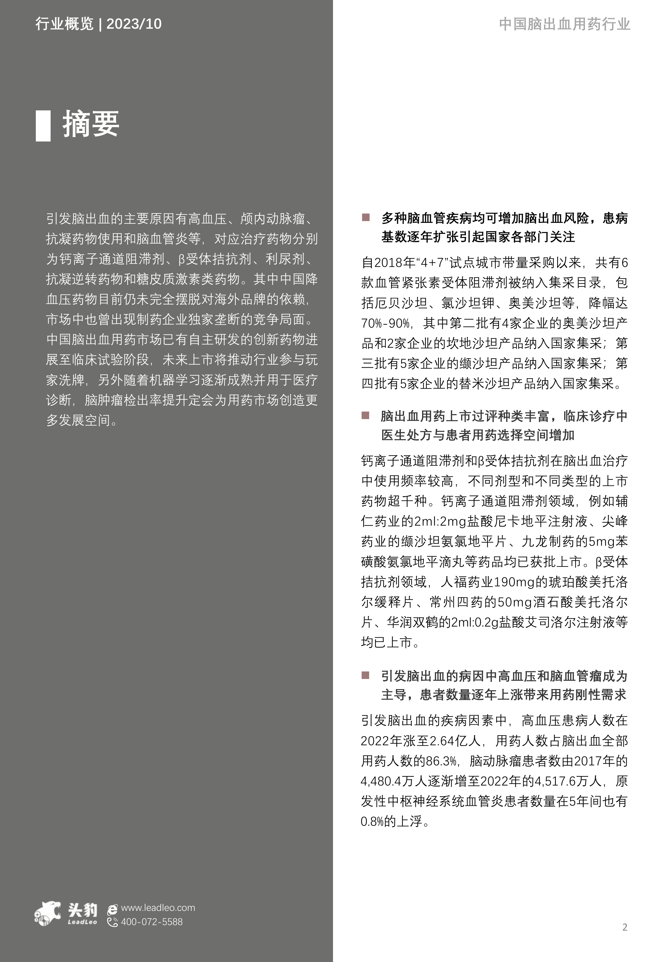 本报告基于头豹研究院对2023年中国脑出血用药行业的分析,核心观点如下: