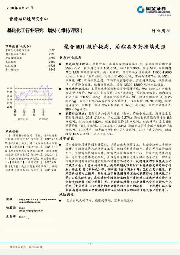 基础化工行业研究:聚合MDI报价提高,菊酯类农药持续走强