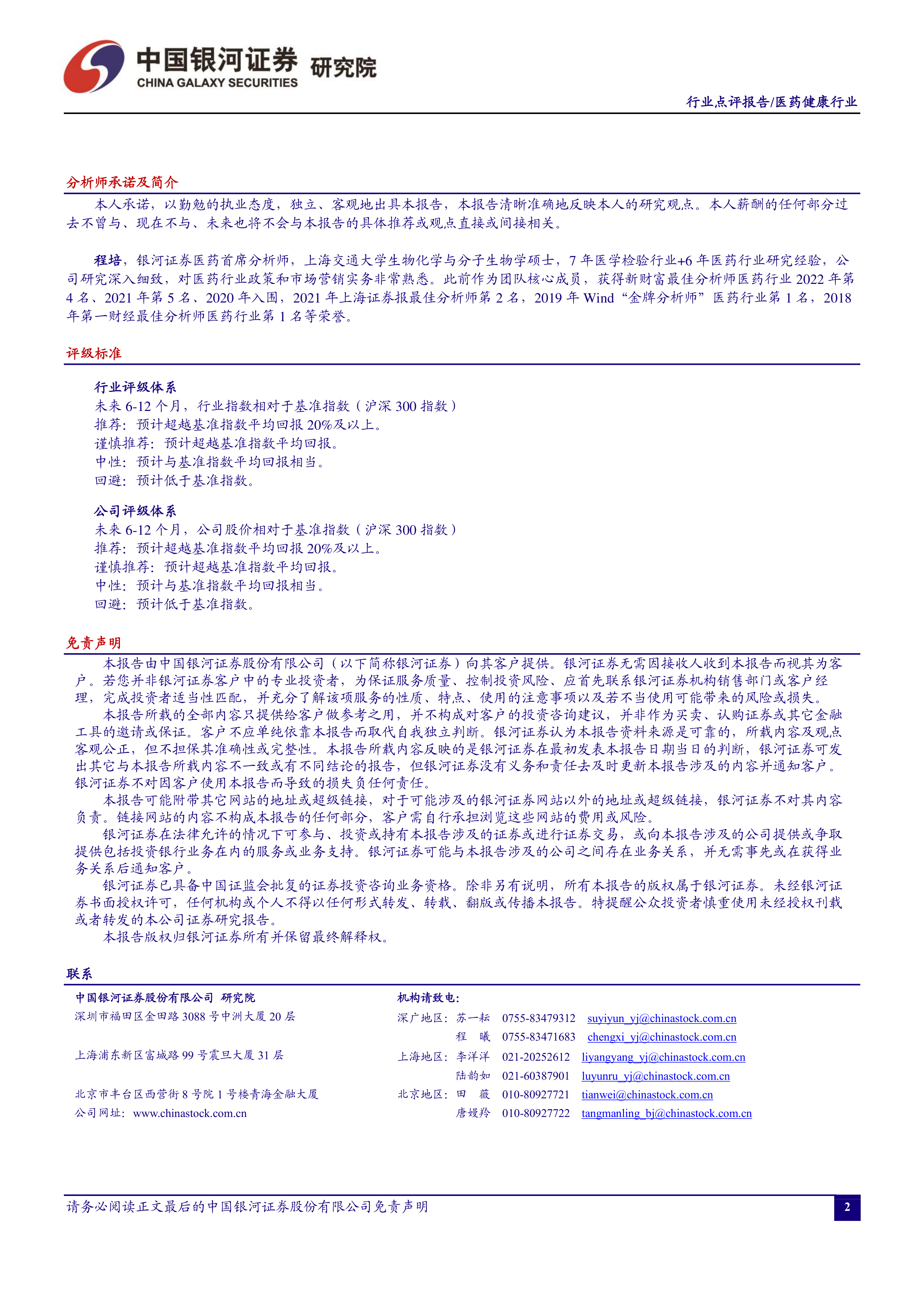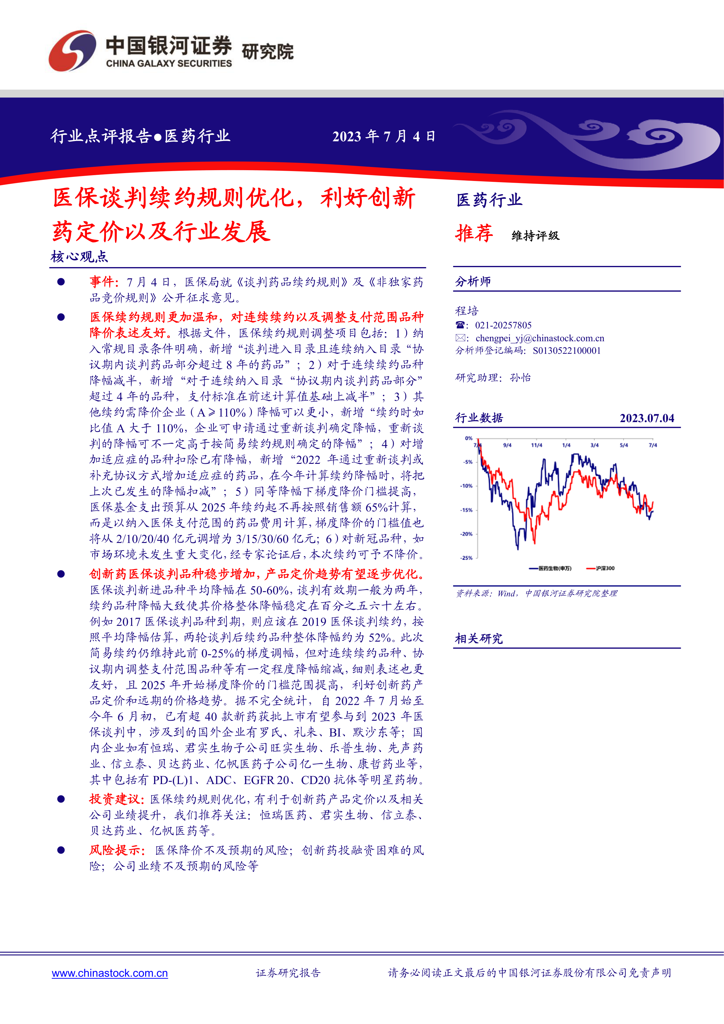 本报告为中国银河证券股份有限公司发布的医药行业点评报告,核心关注点在于医保局发布的《谈判药品续约规则》及《非独家药品竞价规则》征求意见稿对医药行业,特别是创新药企的影响。