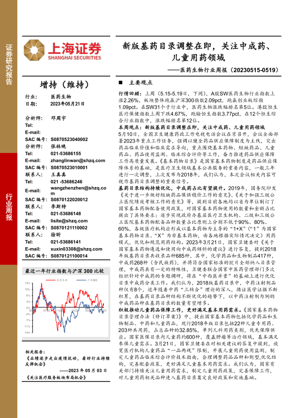 本周观点:新版基药目录调整在即,关注中成药、儿童用药领域