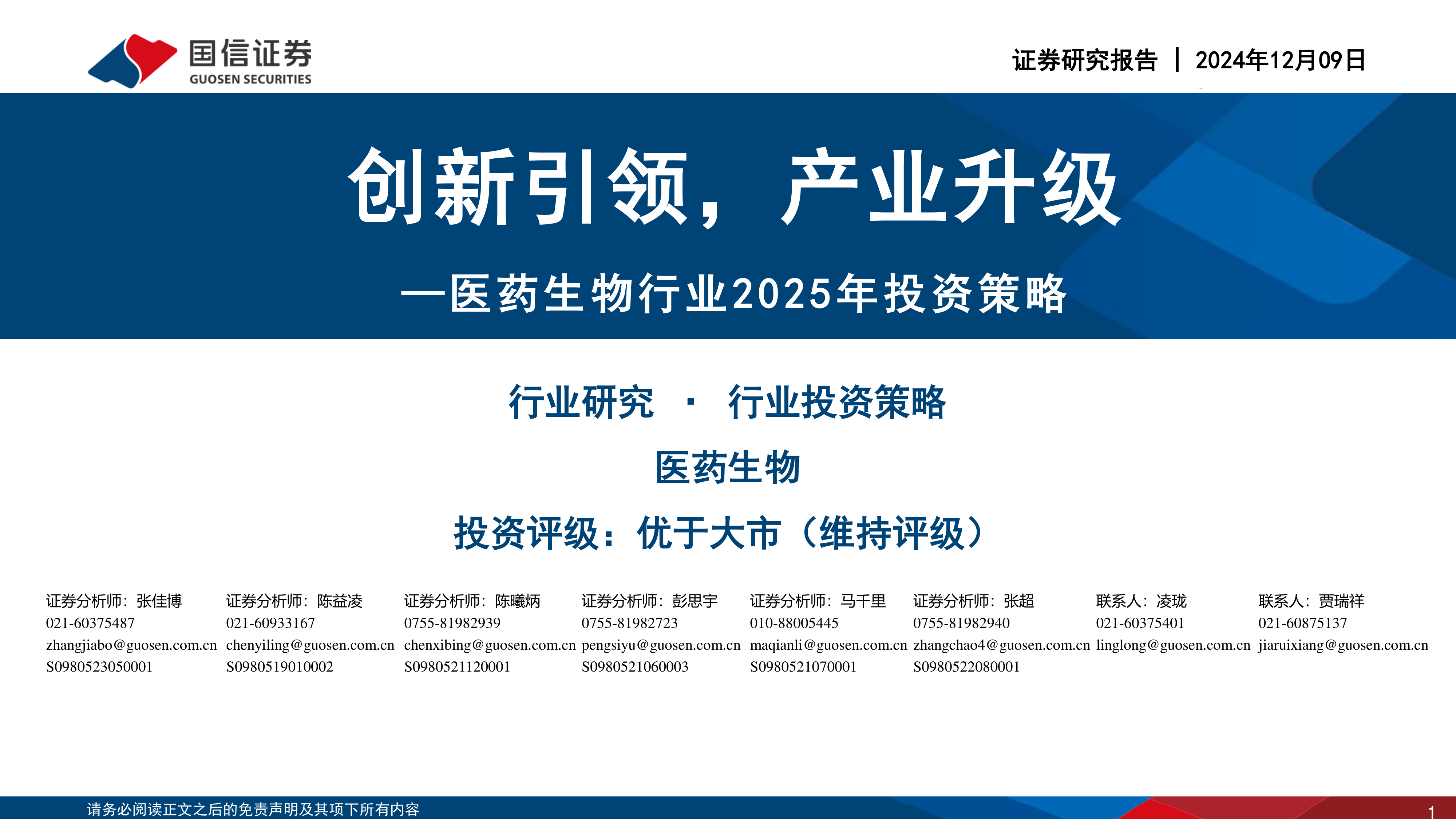 医药生物行业2025年投资策略:创新引领,产业升级