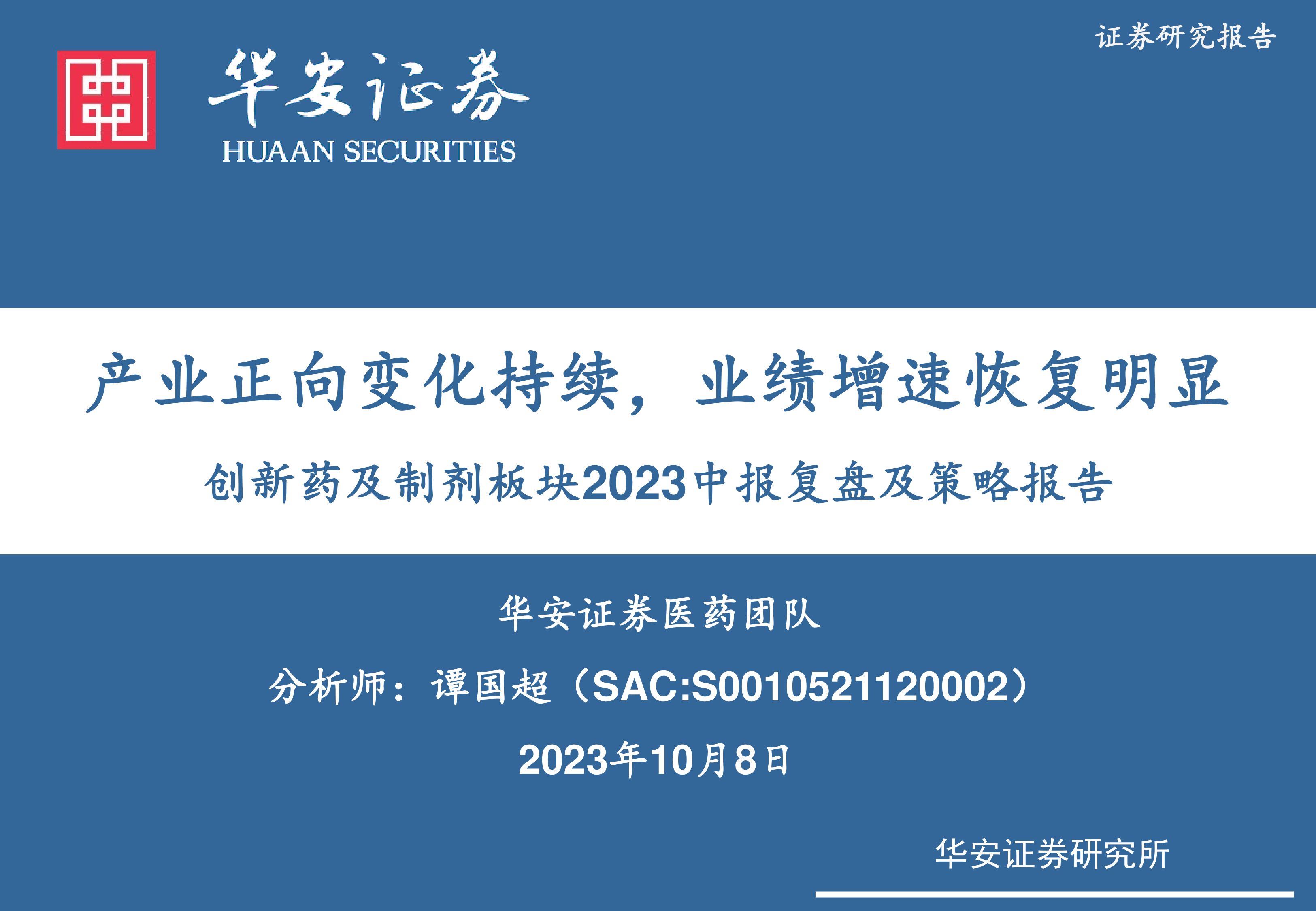 创新药及制剂板块2023中报复盘及策略报告:产业正向变化持续,业绩增速恢复明显