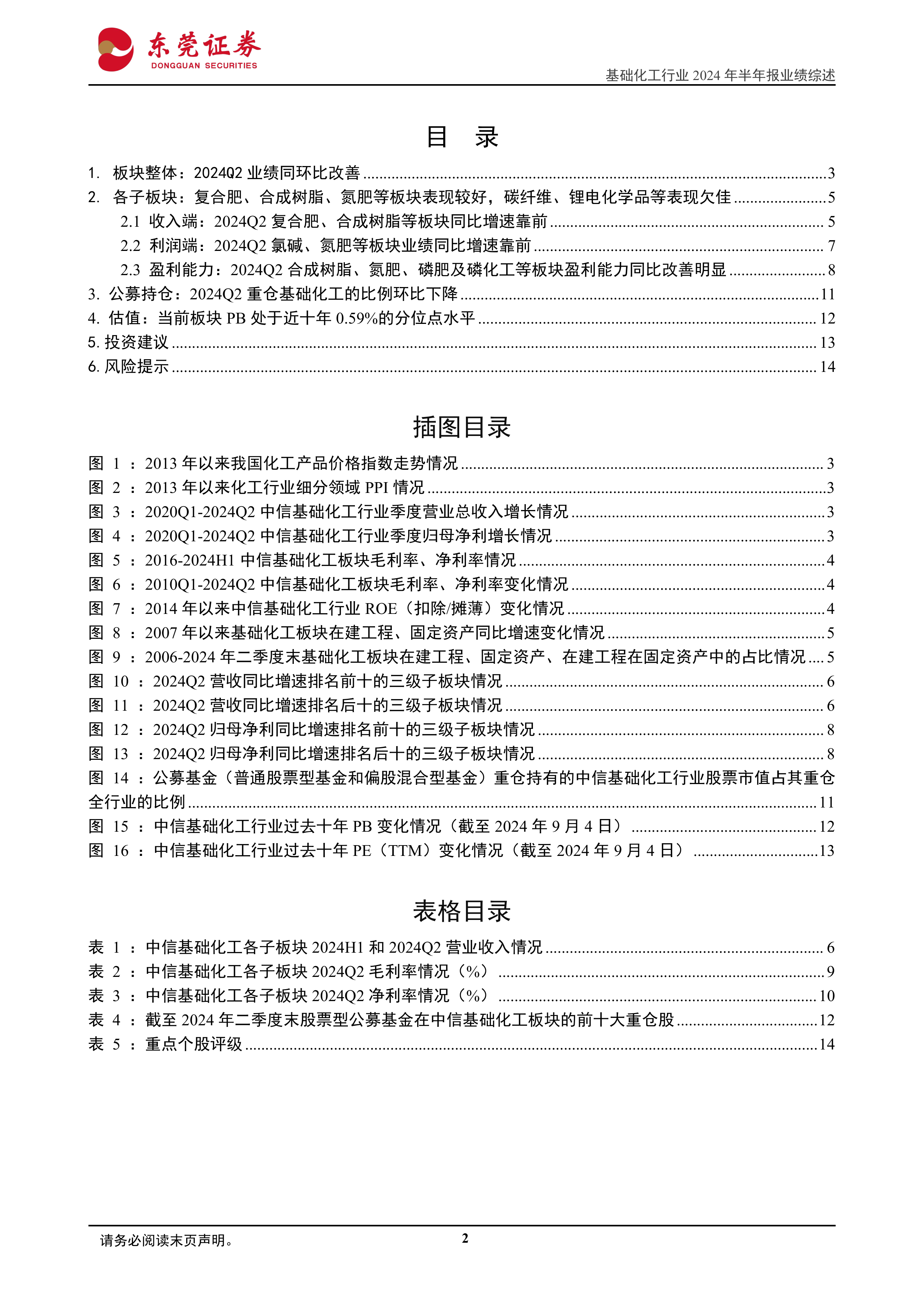 基础化工行业2024年半年报业绩综述:Q2整体业绩同环比改善,但内部分化明显