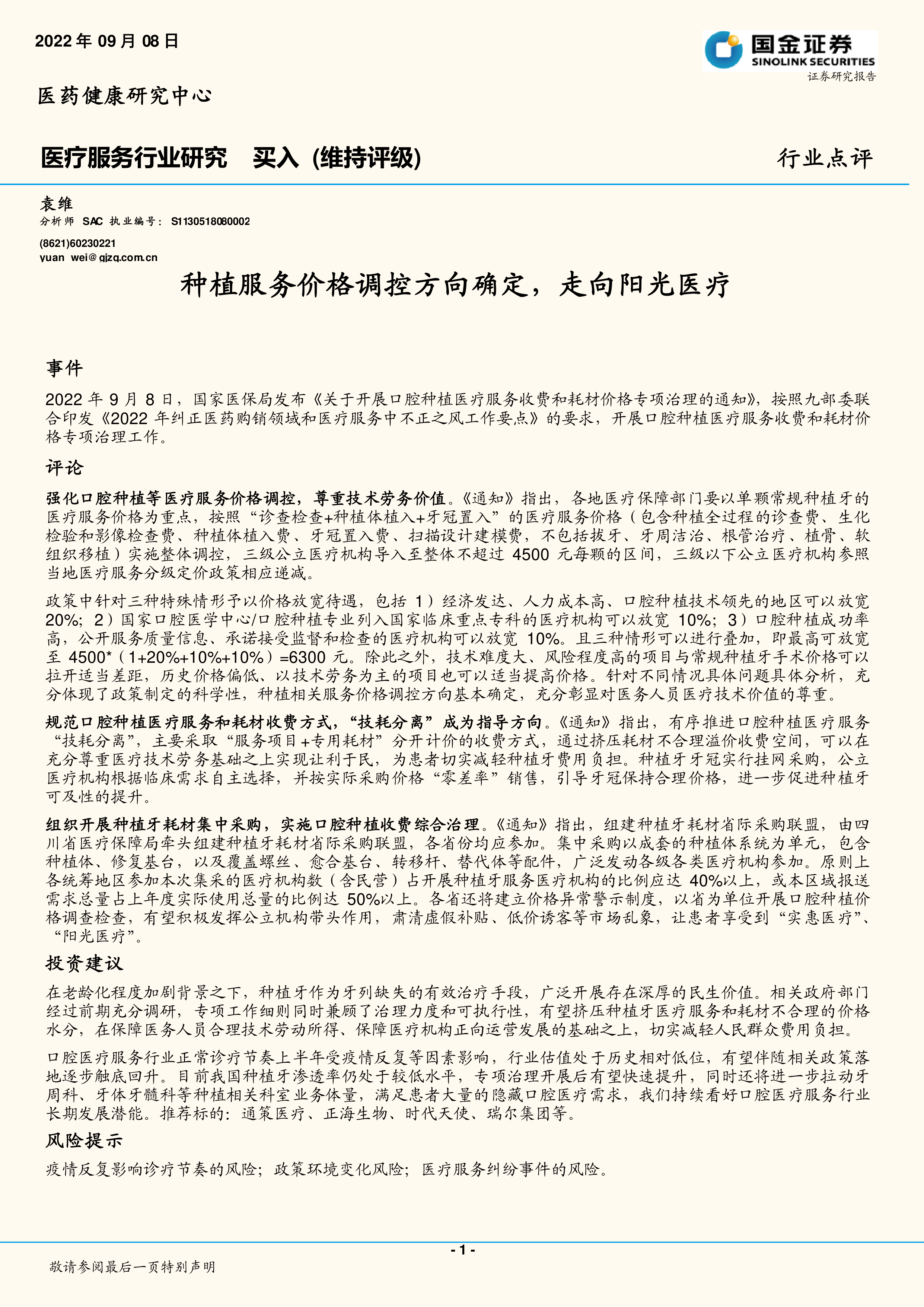 医疗服务行业研究:种植服务价格调控方向确定,走向阳光医疗