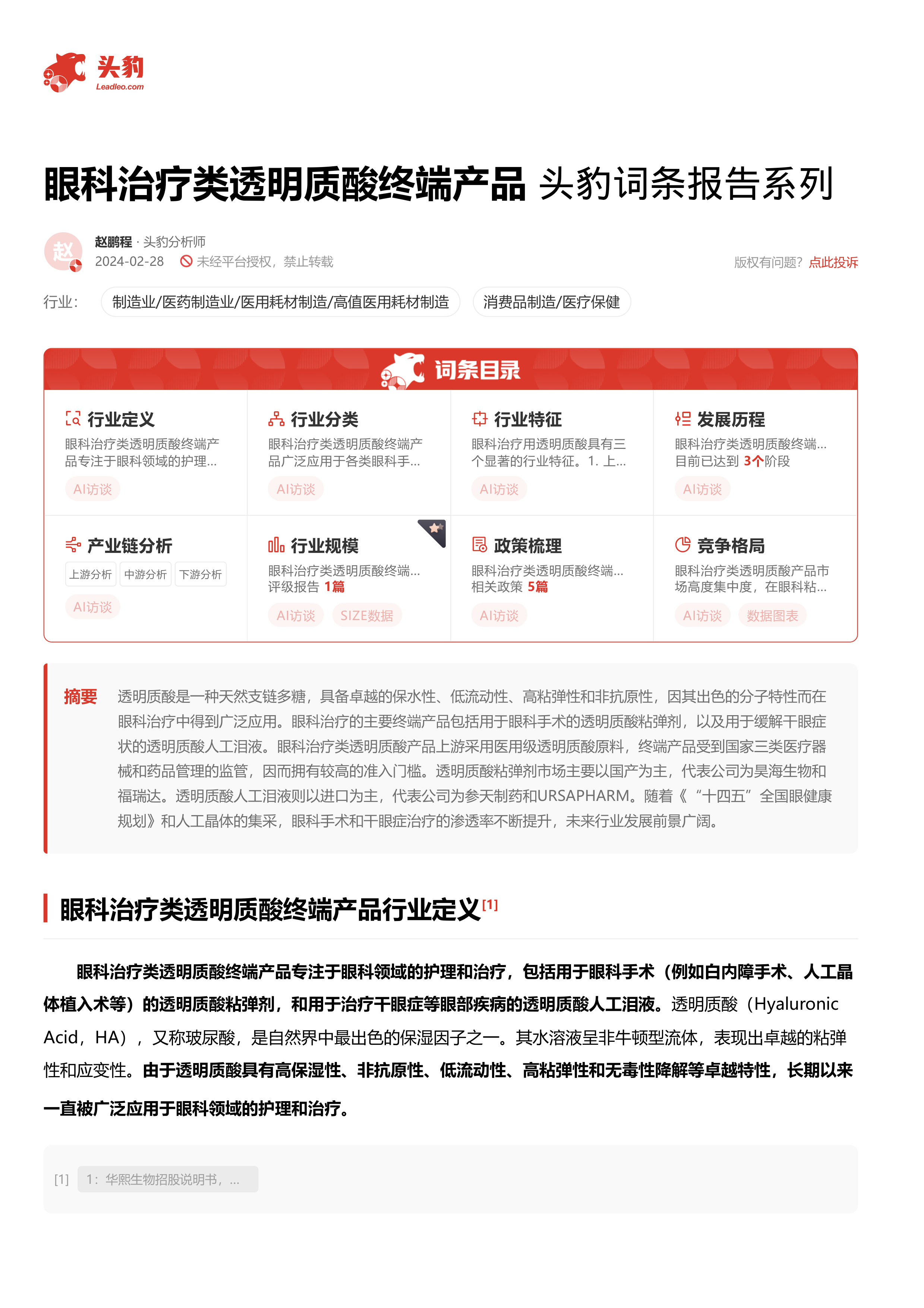 眼科治疗类透明质酸终端产品 头豹词条报告系列