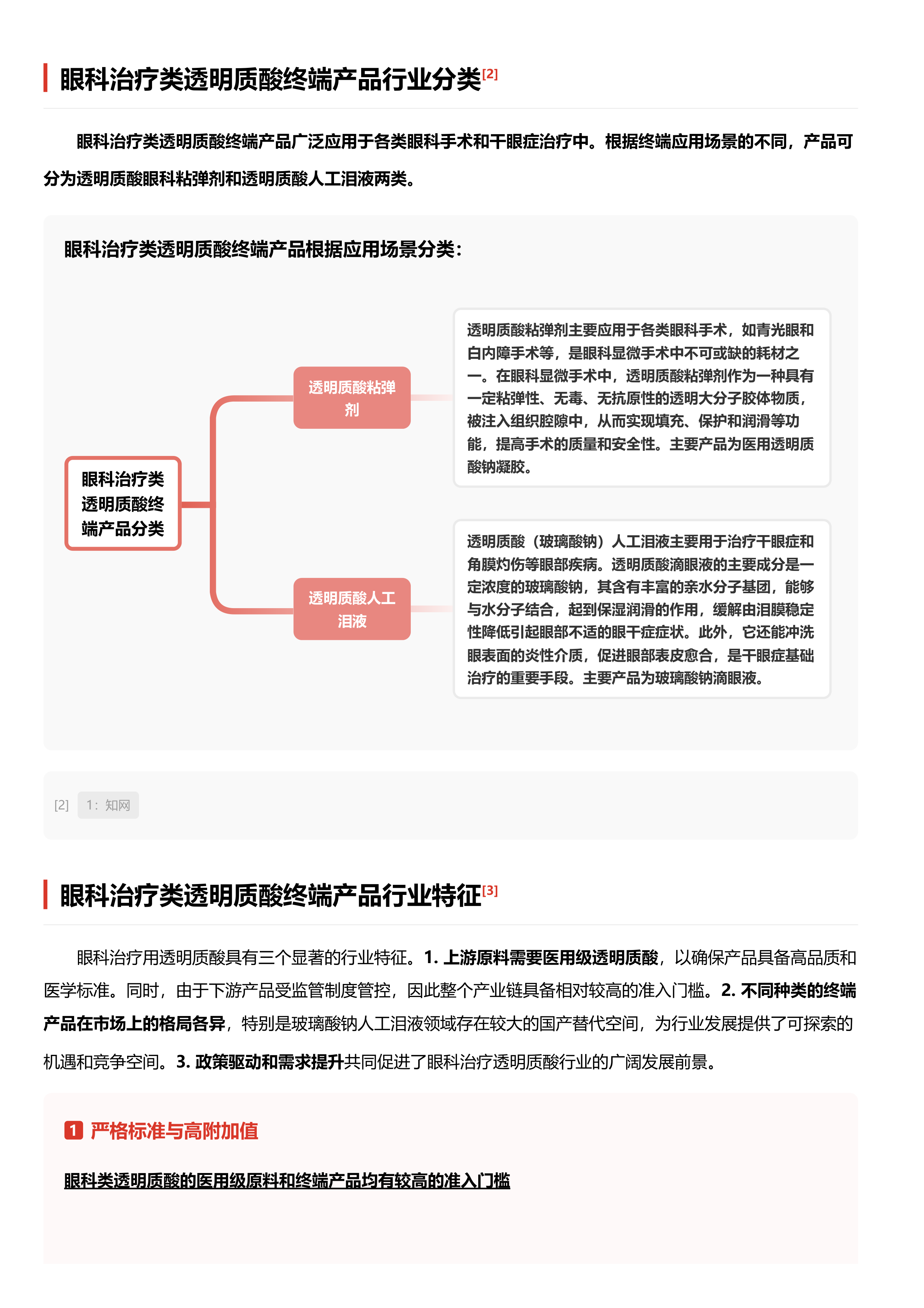 本报告涵盖眼科治疗类透明质酸终端产品市场定义、分类、特征、发展历程、产业链分析、行业规模、政策梳理、竞争格局以及代表企业分析等方面。