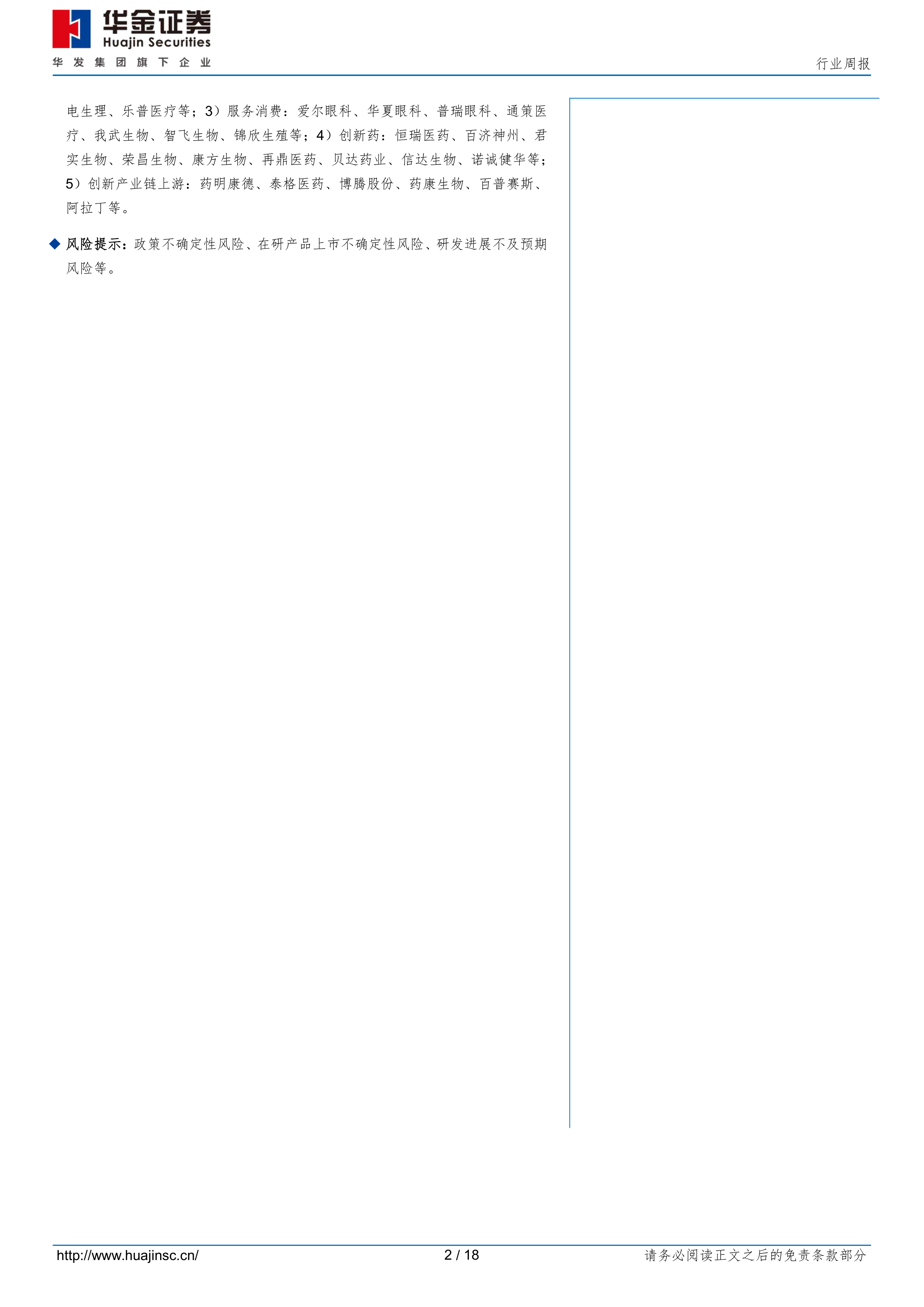 风险提示:政策不确定性风险、在研产品上市不确定性风险、研发进展不及预期风险等。