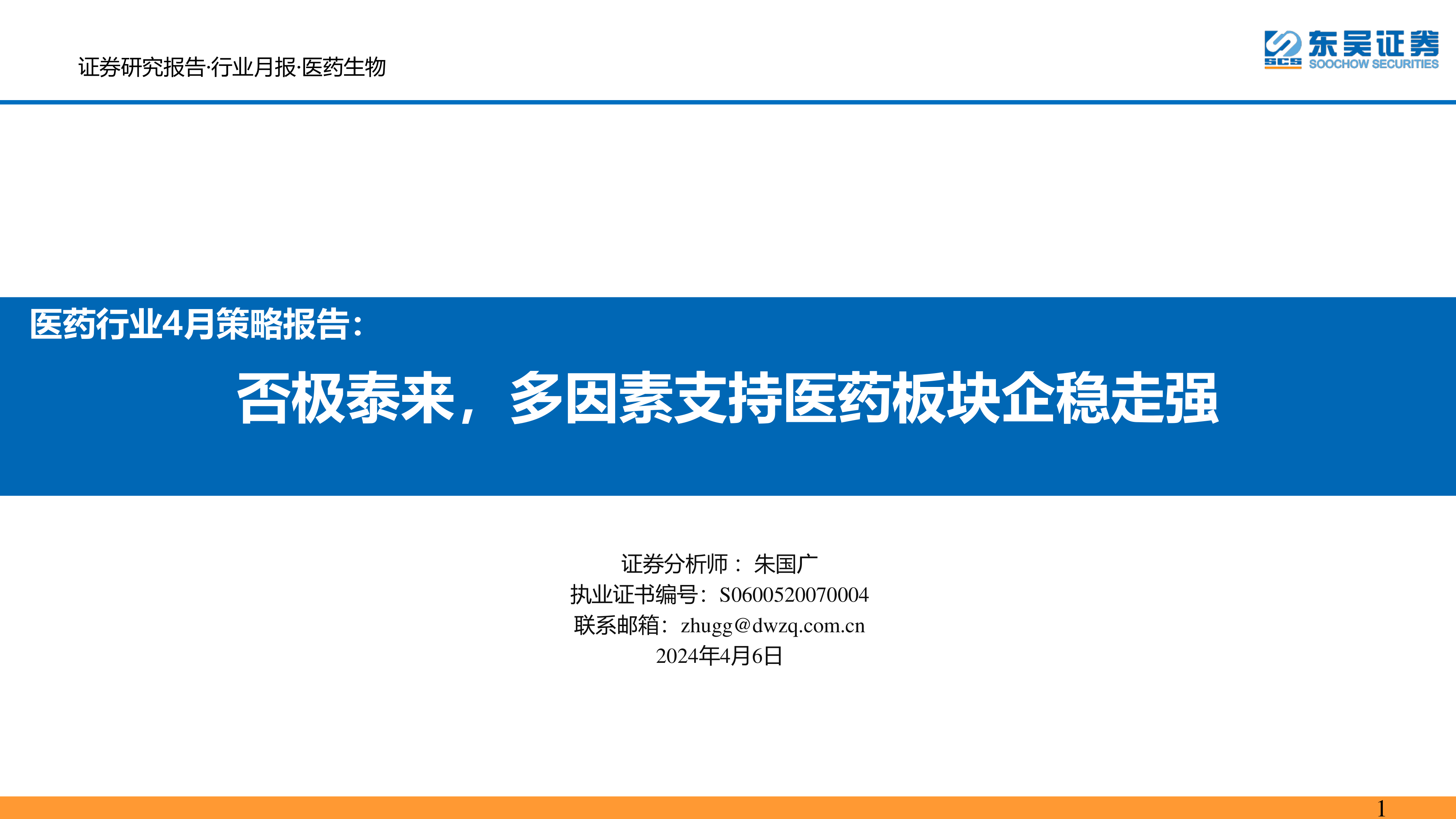 医药行业4月策略报告:否极泰来,多因素支持医药板块企稳走强