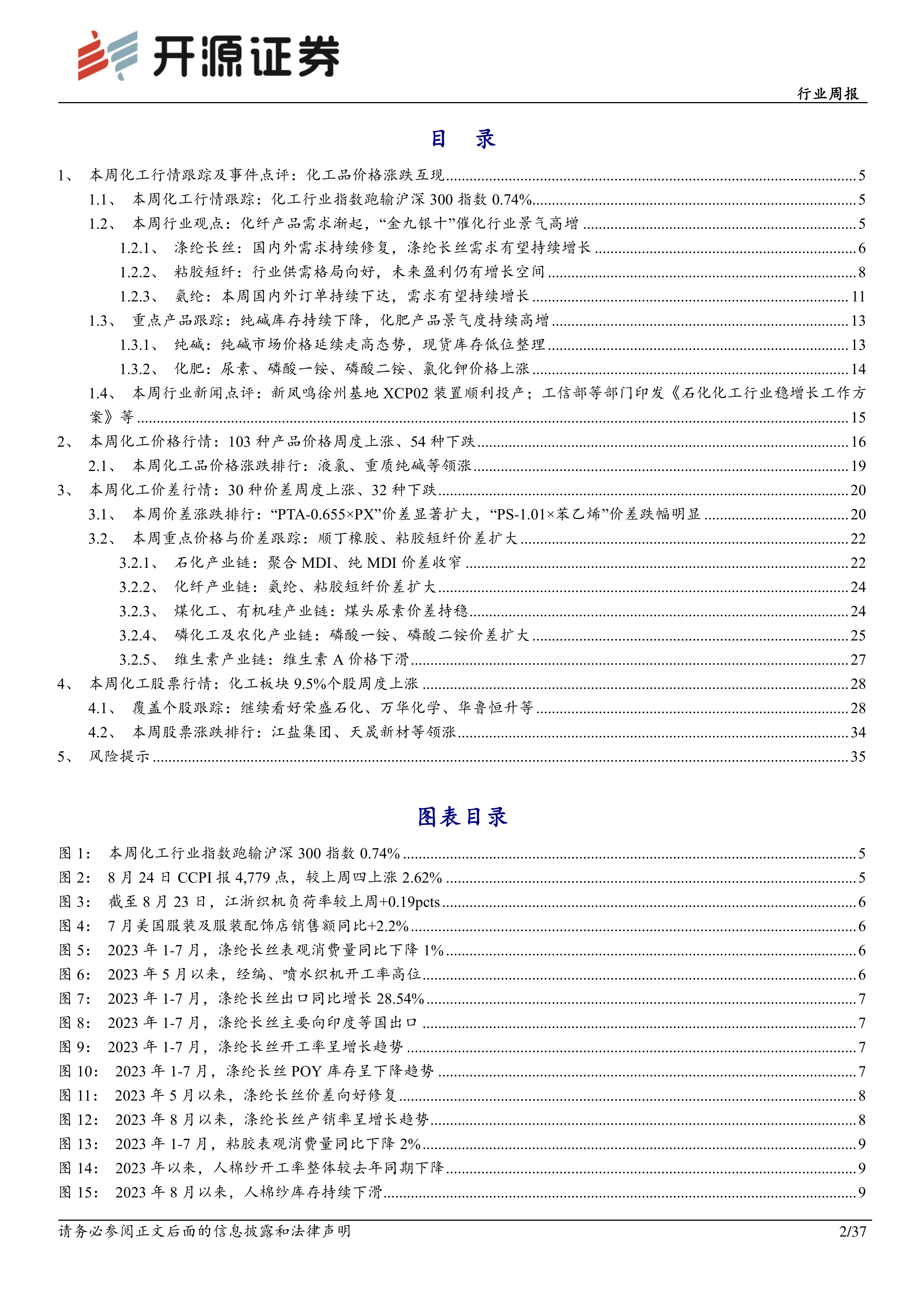 基础化工行业周报:化纤产品需求渐起,“金九银十”催化行业景气高增