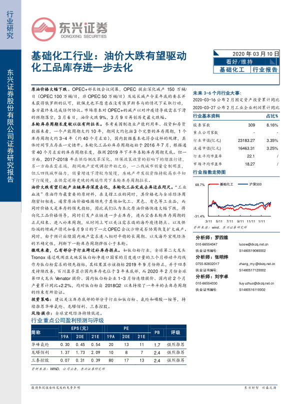 基础化工行业:油价大跌有望驱动化工品库存进一步去化
