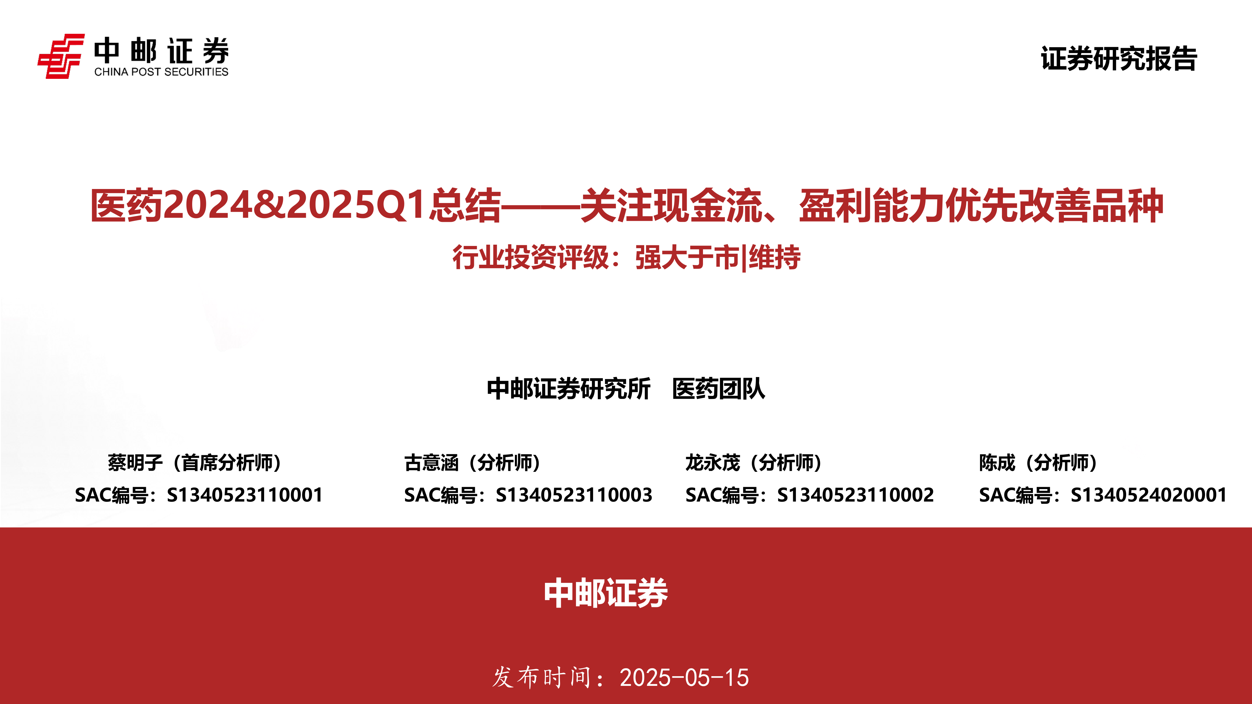 医药2024&2025Q1总结:关注现金流、盈利能力优先改善品种