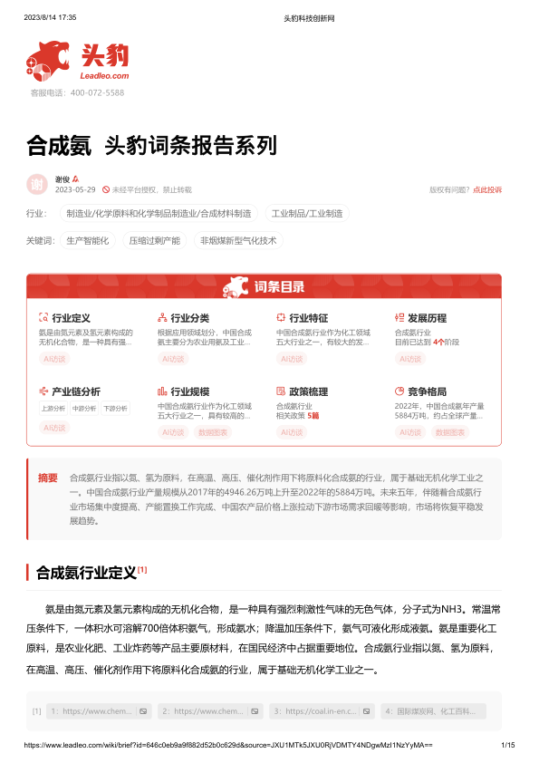 合成氨 头豹词条报告系列