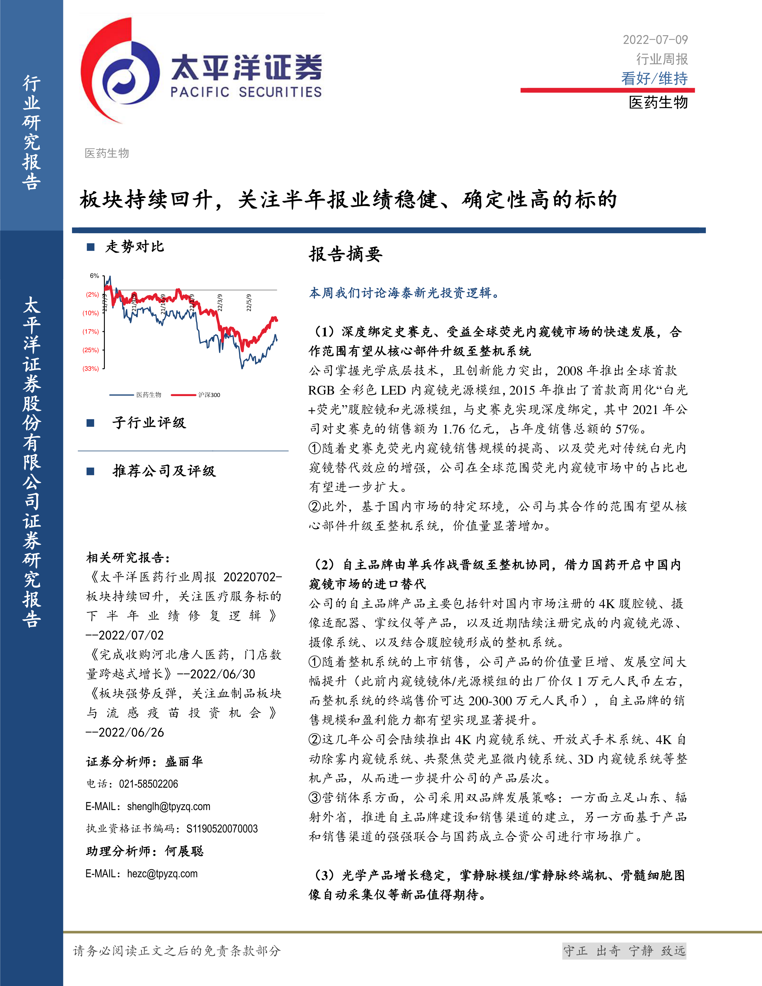 医药生物行业周报:板块持续回升,关注半年报业绩稳健、确定性高的标的