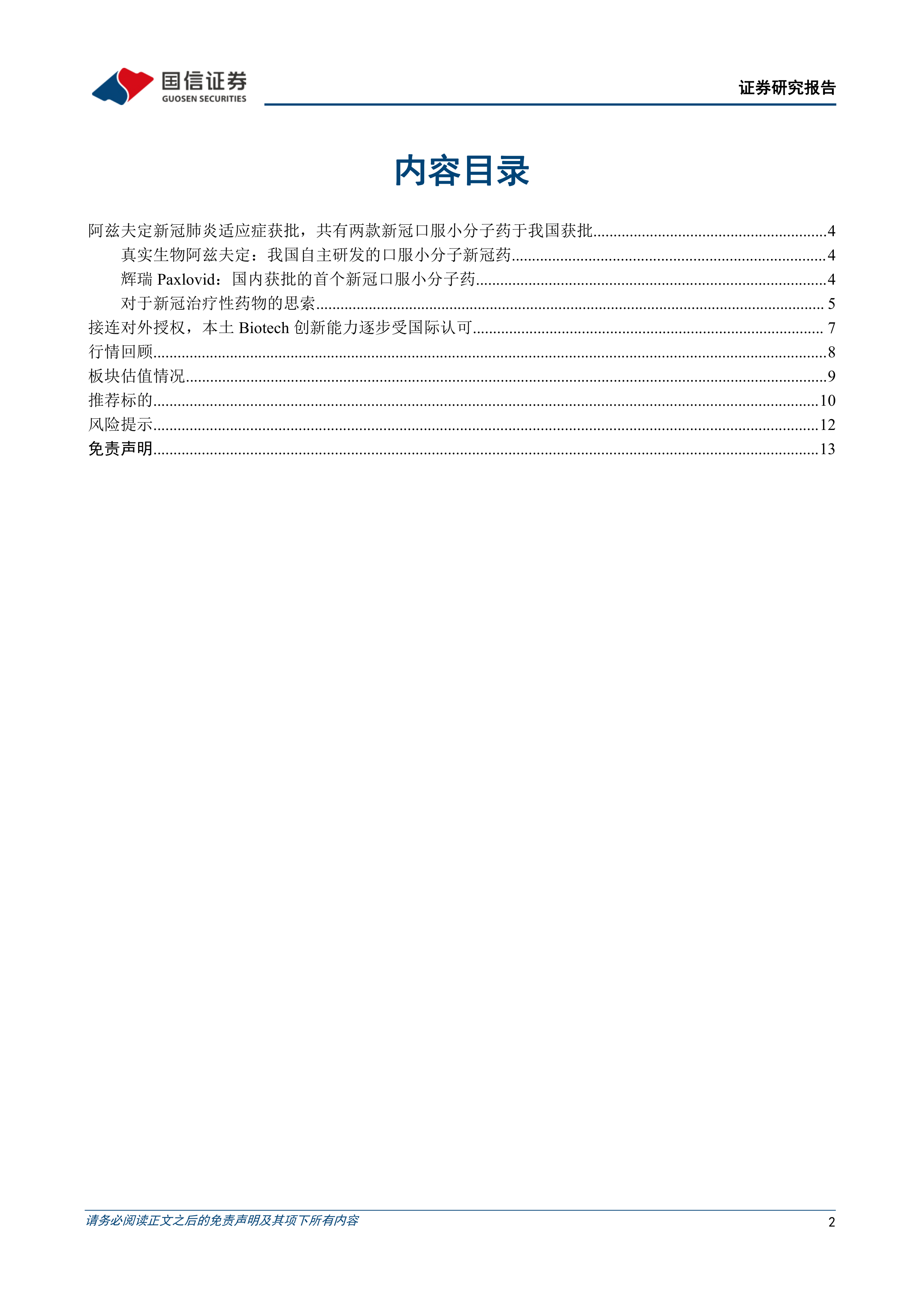 本报告对2022年第31周医药生物板块的市场表现进行了全面分析,重点关注了阿兹夫定获批新冠适应症以及本土ADC药物对外授权两大事件。报告数据显示,医药生物板块整体表现疲软,但国产小分子新冠药物和ADC药物的进展为行业发展带来了新的机遇。报告最后推荐了一系列具有投资价值的标的,并提示了潜在的投资风险,为投资者提供了较为全面的市场分析和投资建议。 报告中大量使用了图表和数据,增强了分析的客观性和说服力。 然而,报告也应注意持续跟踪市场变化,及时更新分析结论,以应对市场动态变化带来的不确定性。