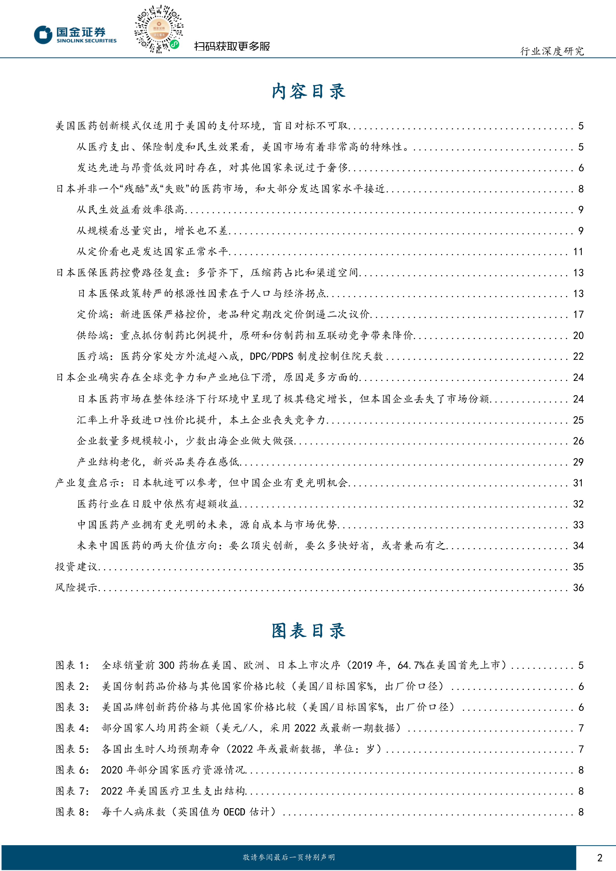 报告最后给出了部分重点关注的中国医药企业,并提示了降价和控费政策超出预期、人口老龄化加剧、创新风险和成本升高、产业转移风险以及质量安全事故和舆情风险等潜在风险。