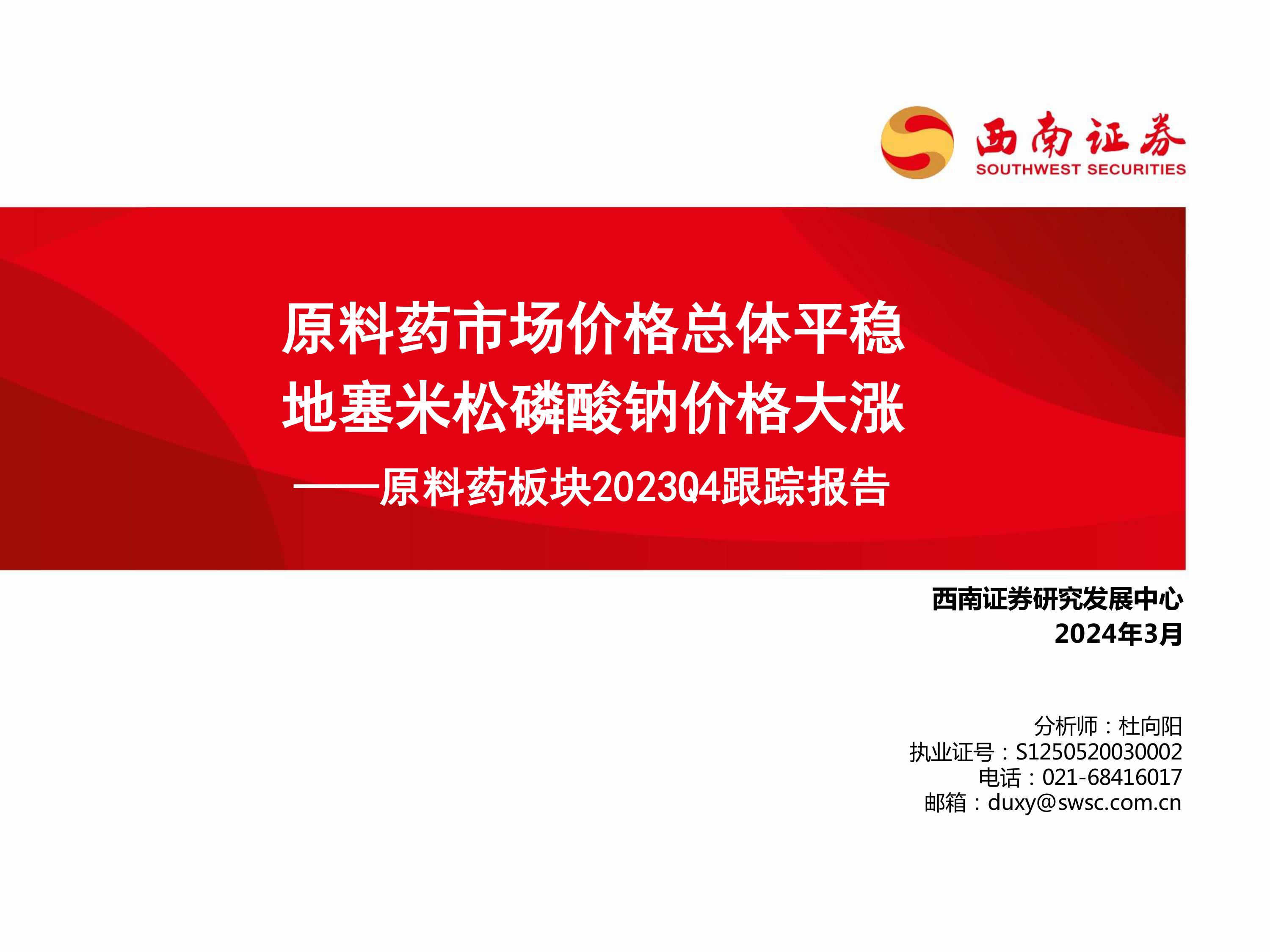 原料药板块2023Q4跟踪报告:原料药市场价格总体平稳 地塞米松磷酸钠价格大涨