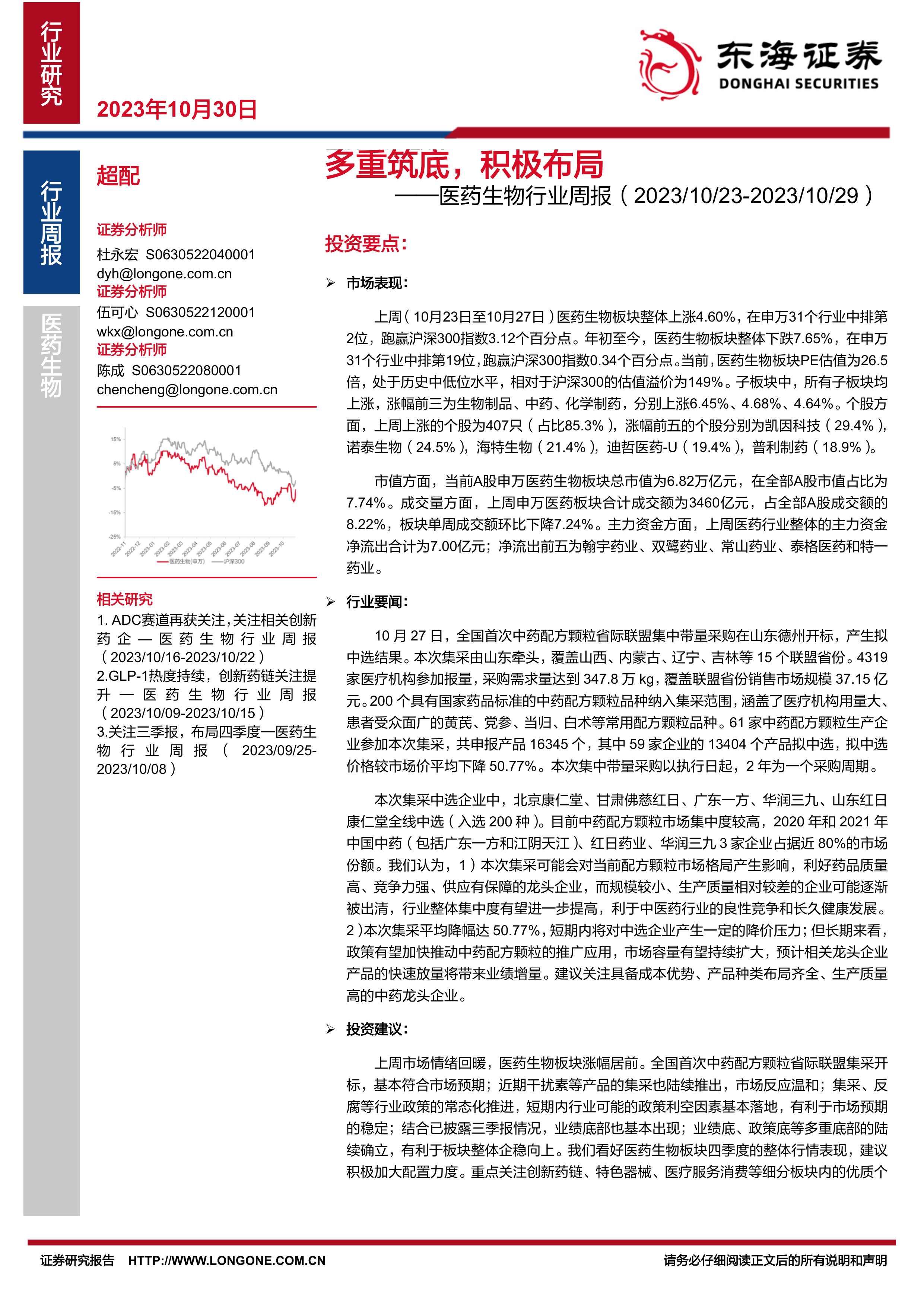 报告总结了近期重要的行业新闻,包括:全国首次中药配方颗粒省际联盟集采开标、干扰素等产品的集采陆续推出、以及相关政策的发布。 对中药配方颗粒集采结果进行了详细解读,分析了其对市场格局和龙头企业的影响,并预测了集采对行业集中度提升和长期发展的积极作用。 报告指出,集采、反腐等政策的常态化推进,短期内行业可能的政策利空因素基本落地,有利于市场预期稳定。