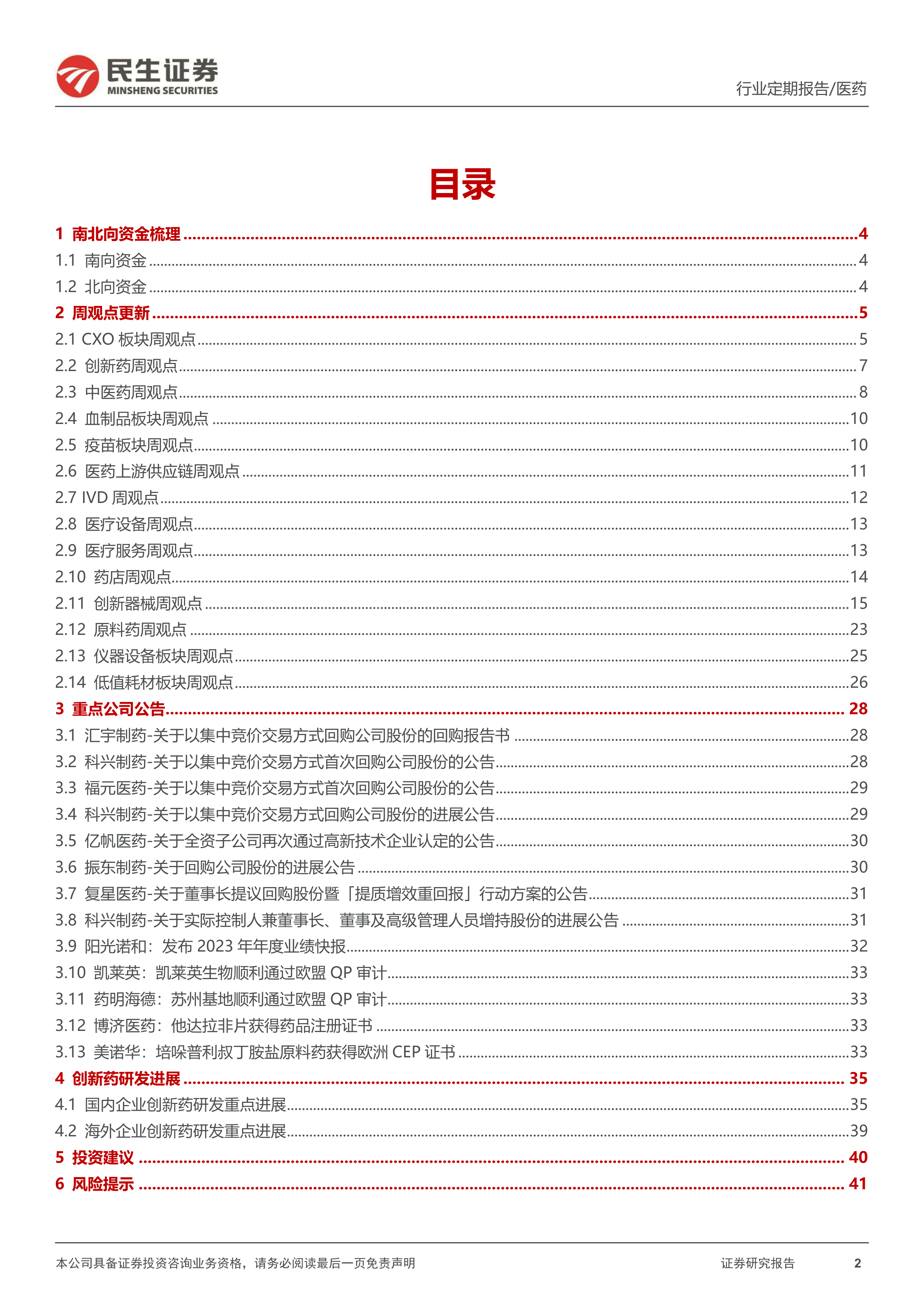 风险提示:集采压力大于预期风险;产品研发进度不及预期风险;竞争加剧风险;政策监管环境变化风险;药物研发服务市场需求下降的风险。