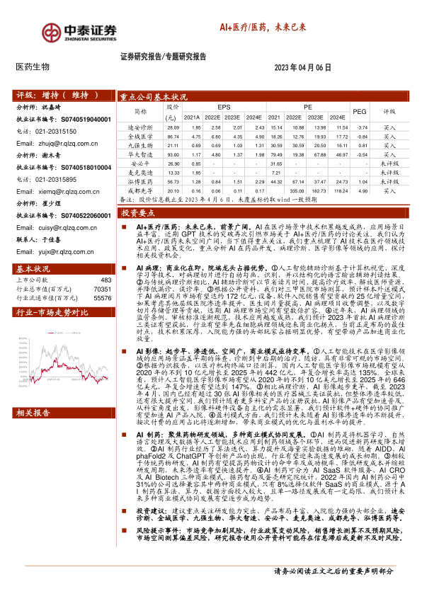 医药生物专题研究报告:AI+医疗/医药,未来已来