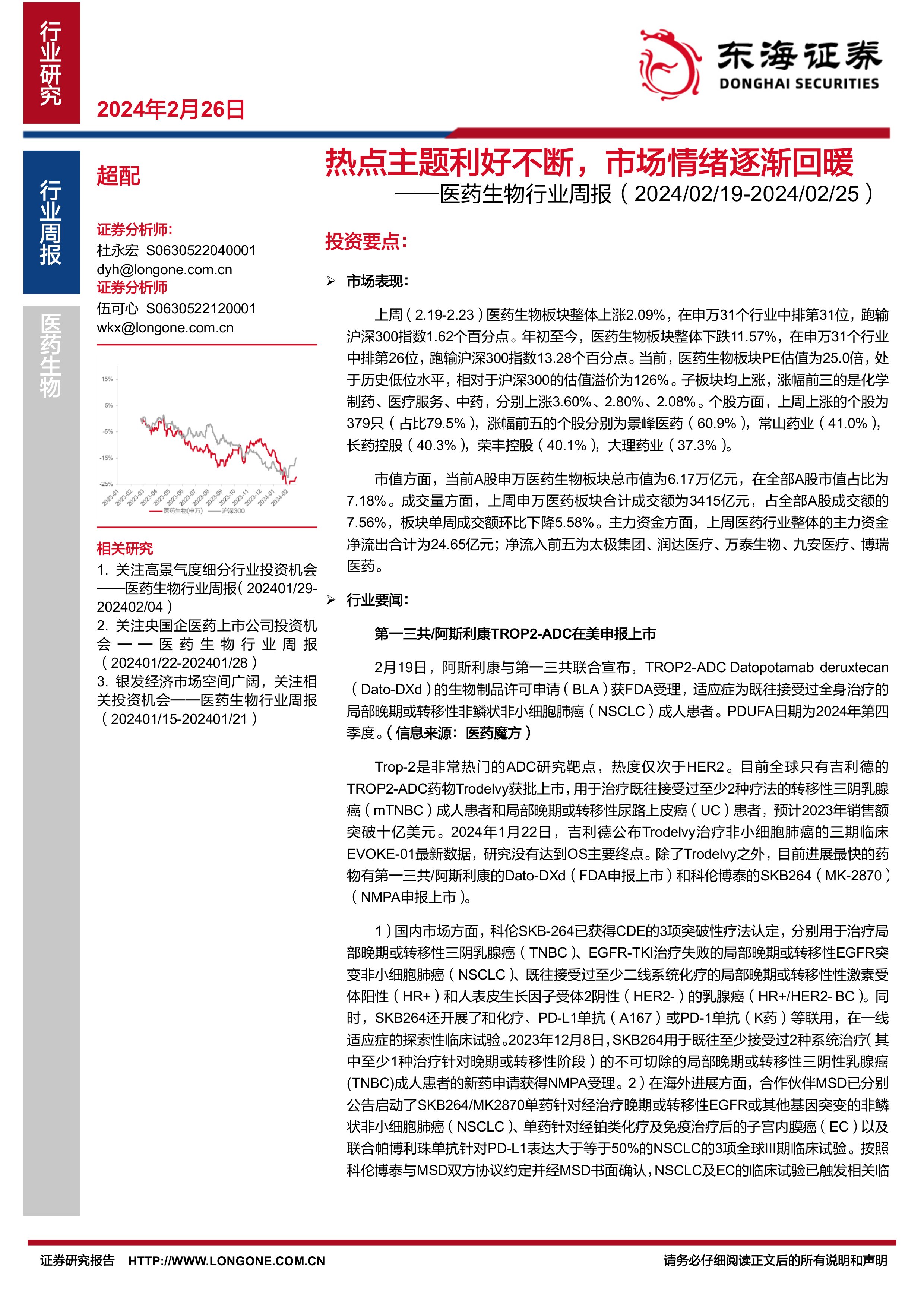 医药生物行业周报:热点主题利好不断,市场情绪逐渐回暖