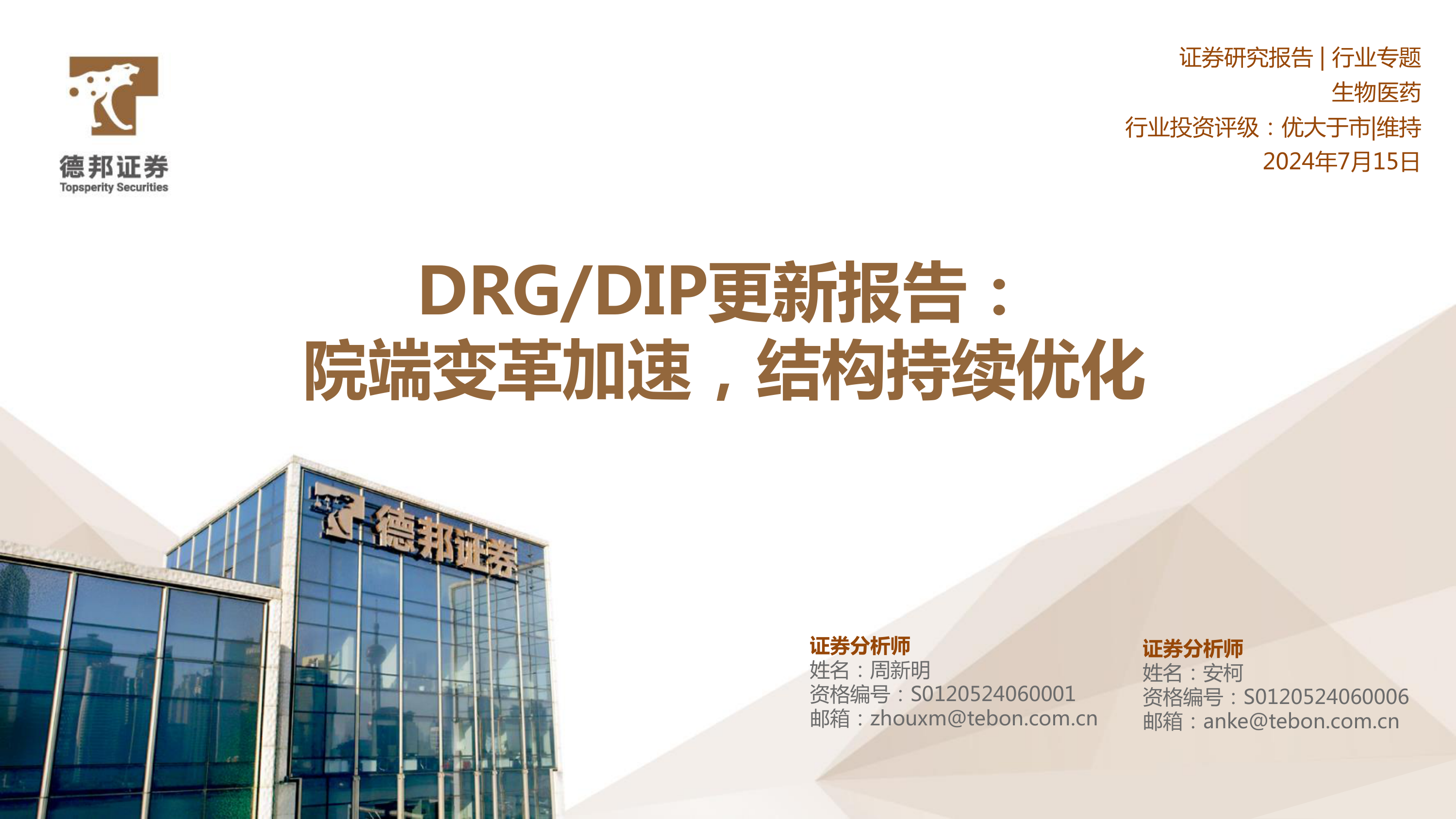 生物医药行业专题:DRG/DIP更新报告:院端变革加速,结构持续优化