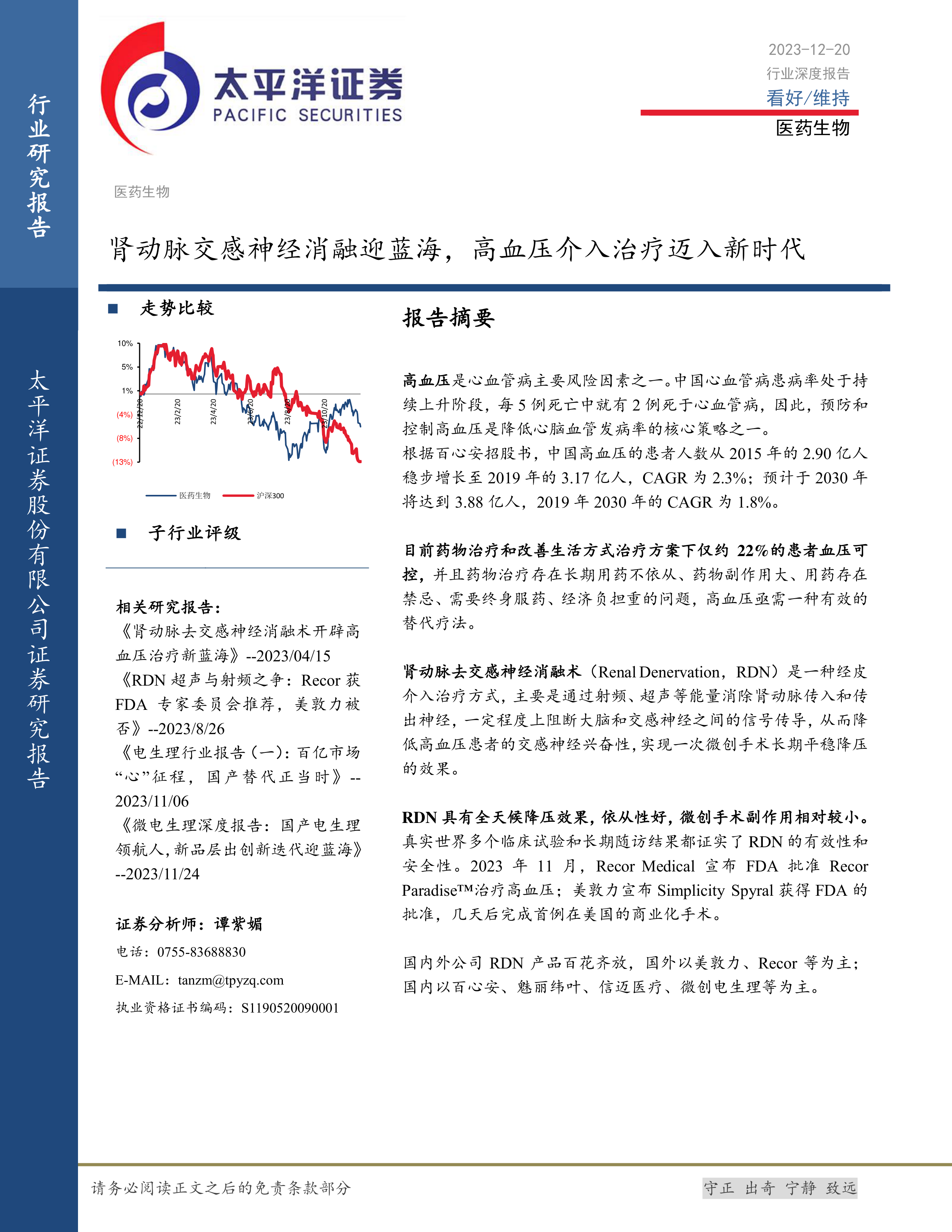 医药生物行业深度报告:肾动脉交感神经消融迎蓝海,高血压介入治疗迈入新时代