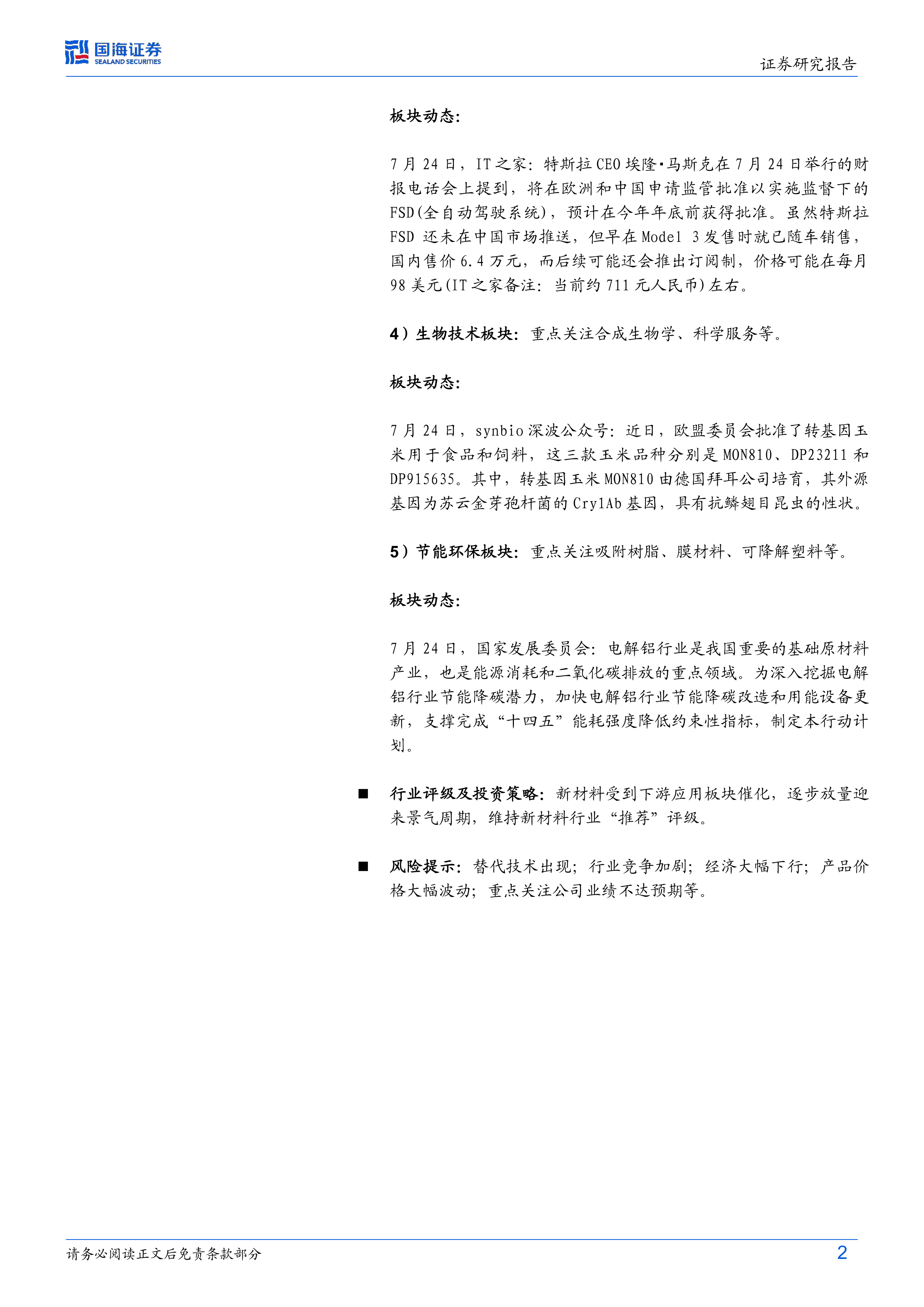 该板块重点关注光伏、锂离子电池、质子交换膜和储氢材料。报告提及特斯拉FSD系统预计年底前获批,以及国际能源署预测全球电力消耗将快速增长等信息,并分析了这些信息对新能源材料市场的影响。报告也提供了相关上市公司的公告信息和关键数据,例如碳酸锂、氢氧化锂等原材料价格。