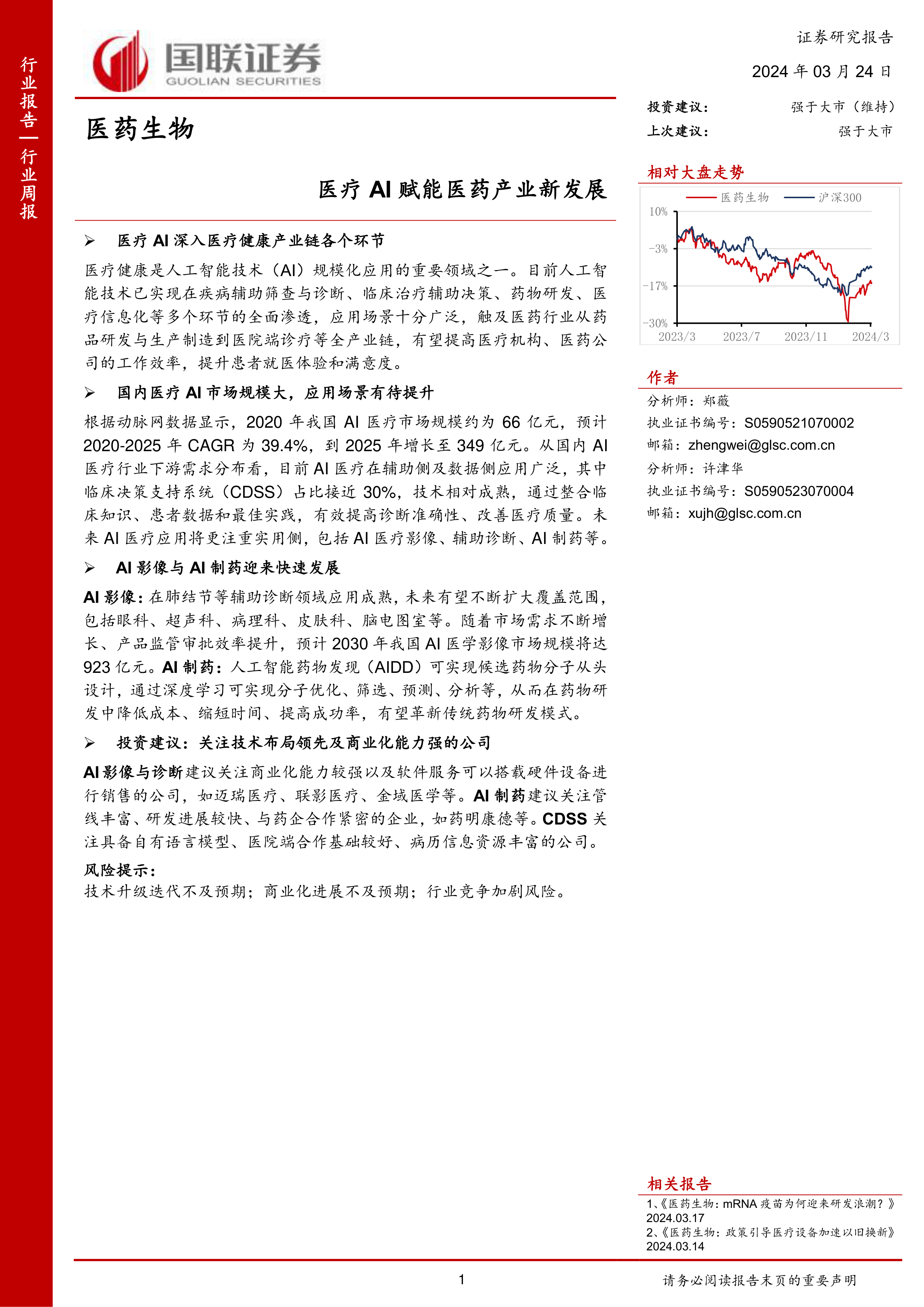 医药生物行业周报:医疗AI赋能医药产业新发展