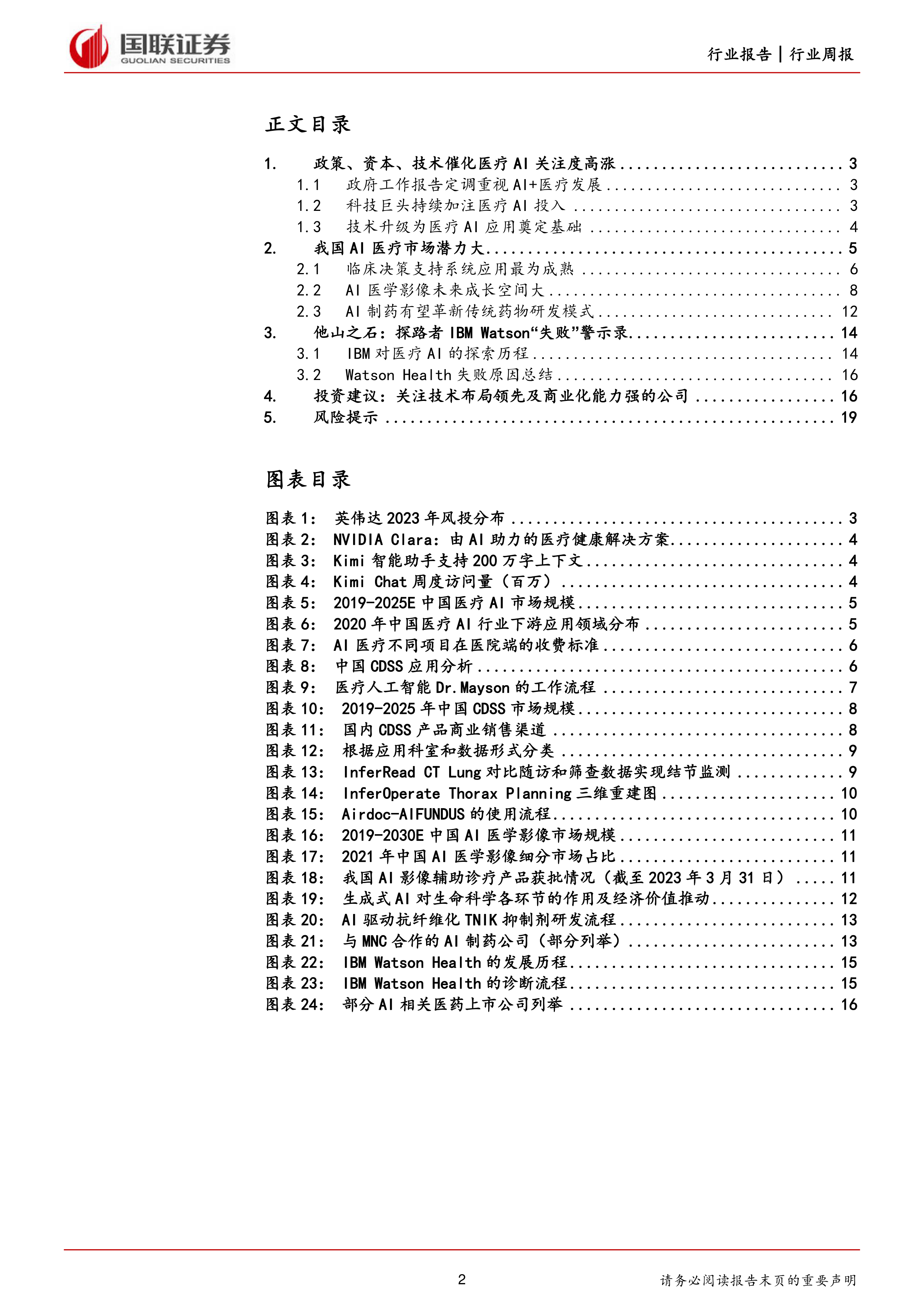 AI影像与诊断建议关注商业化能力较强以及软件服务可以搭载硬件设备进行销售的公司,如迈瑞医疗、联影医疗、金域医学等。AI制药建议关注管线丰富、研发进展较快、与药企合作紧密的企业,如药明康德等。CDSS关注具备自有语言模型、医院端合作基础较好、病历信息资源丰富的公司。风险提示: