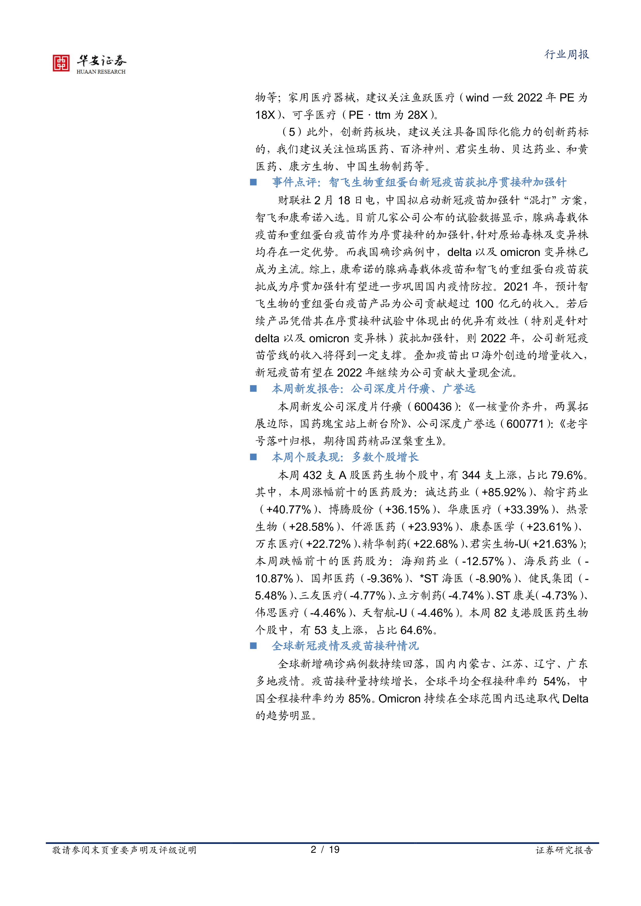 本报告对医药生物行业本周行情进行了全面分析,并结合宏观政策、行业发展趋势以及全球疫情形势,给出了相应的投资建议。报告认为,虽然短期内行业面临挑战,但长期来看,中药、医疗设备、科研试剂和上游等领域仍存在显著的投资机遇。投资者应关注细分领域,并通过自下而上的方法选择具有投资价值的个股。 报告同时对智飞生物重组蛋白疫苗获批事件以及片仔癀、广誉远两家公司的投资价值进行了深入分析,为投资者提供了更全面的信息参考。 需要注意的是,报告中提到的投资建议仅供参考,投资者应根据自身风险承受能力和投资目标做出独立的投资决策。
