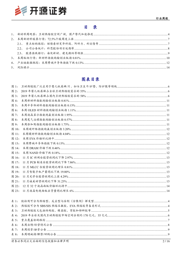 新材料行业周报:卫材热熔胶空间广阔,国产替代加速推进