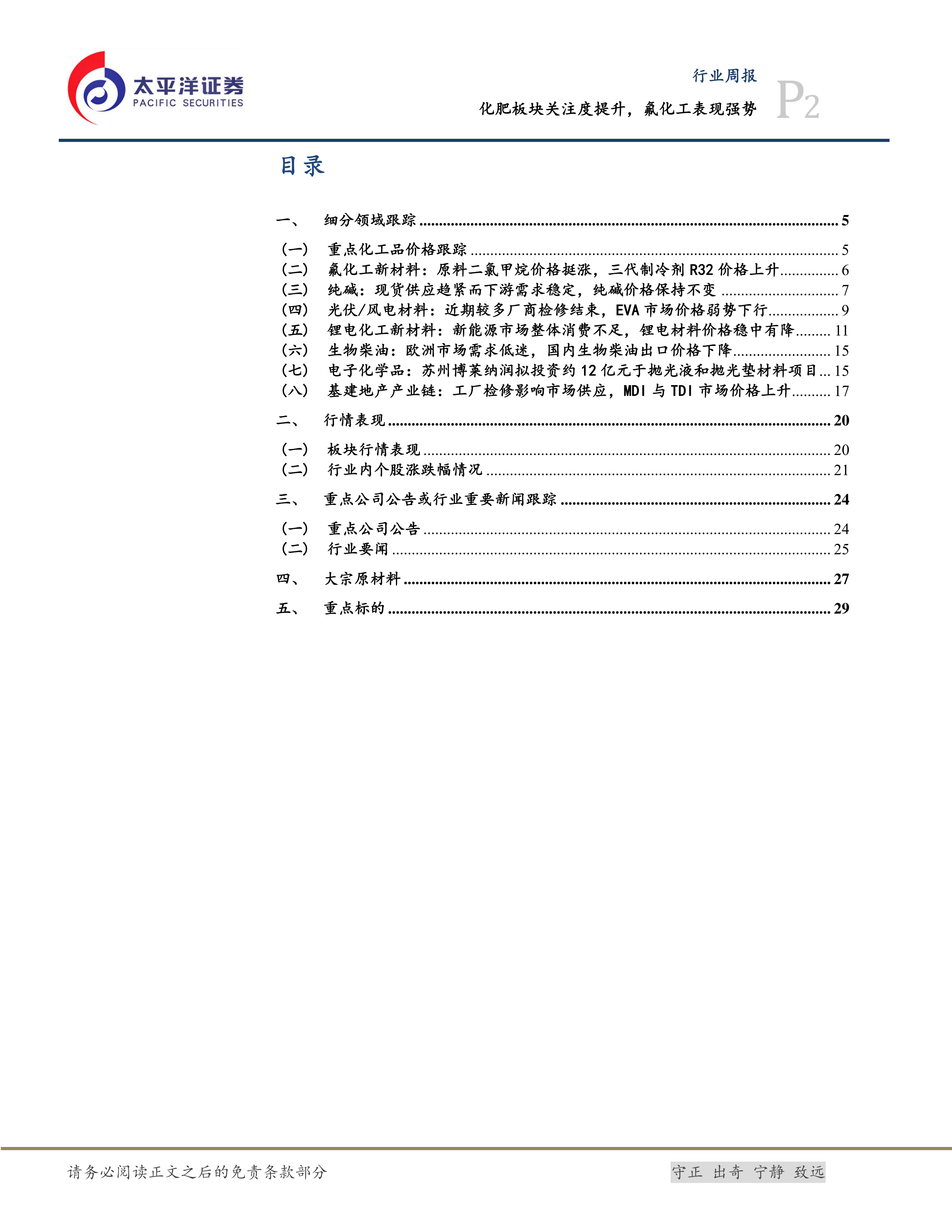 报告还对纯碱、光伏/风电材料(EVA、POE、碳纤维)、锂电化工新材料(碳酸锂、六氟磷酸锂、电解液、正极材料、负极材料、前驱体、隔膜、溶剂、锂电池)、生物柴油、电子化学品以及基建地产产业链(PVC、MDI、TDI)等多个化工细分领域进行了价格跟踪和市场分析,详细阐述了各领域的价格波动、供需变化、以及行业发展趋势。 数据显示,这些领域的价格和市场表现差异较大,有的保持稳定,有的则出现涨跌互现的情况,反映出市场的多样性和复杂性。