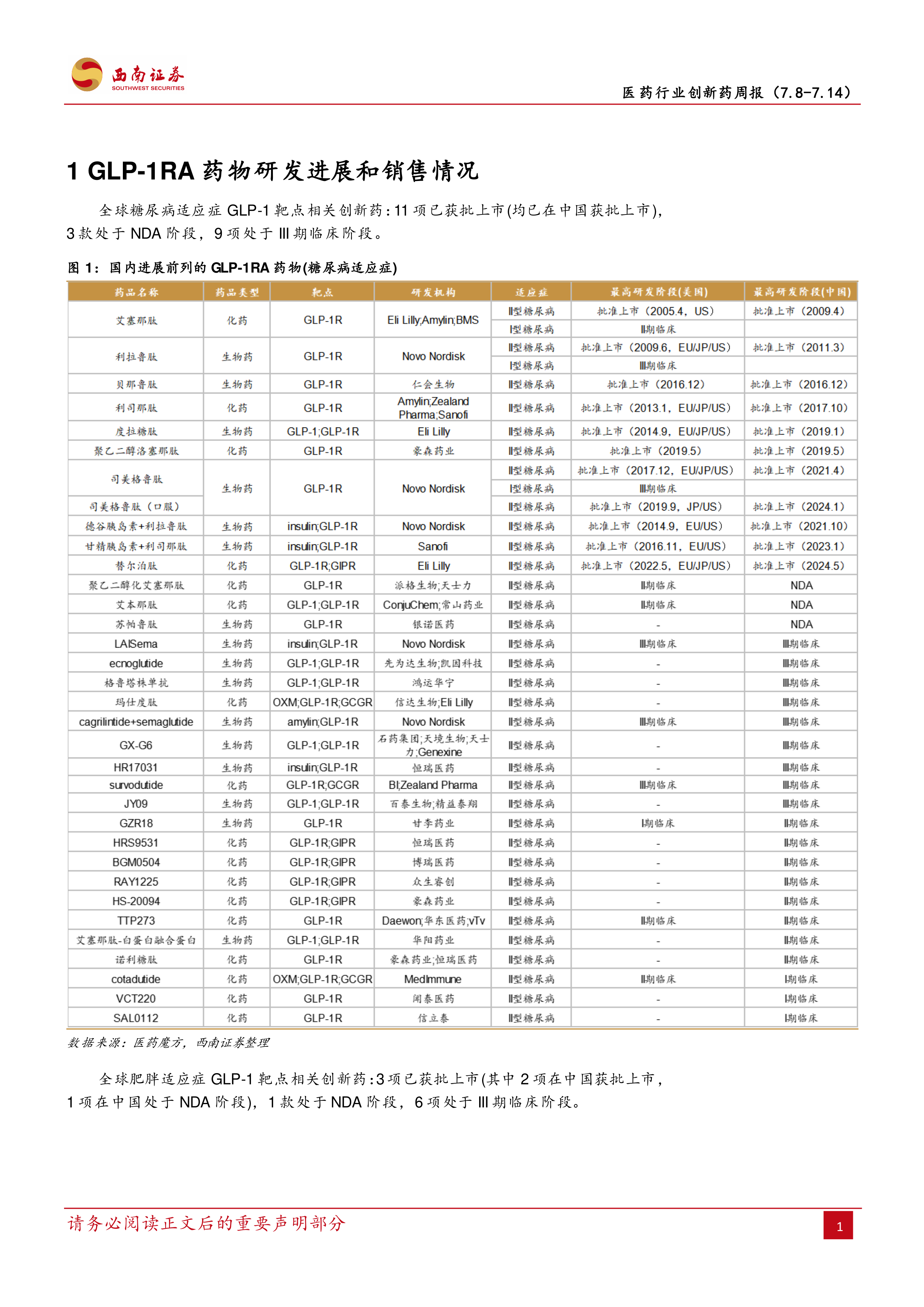 本报告基于西南证券对2024年7月8日至14日医药行业创新药市场一周表现的跟踪分析,核心观点如下: