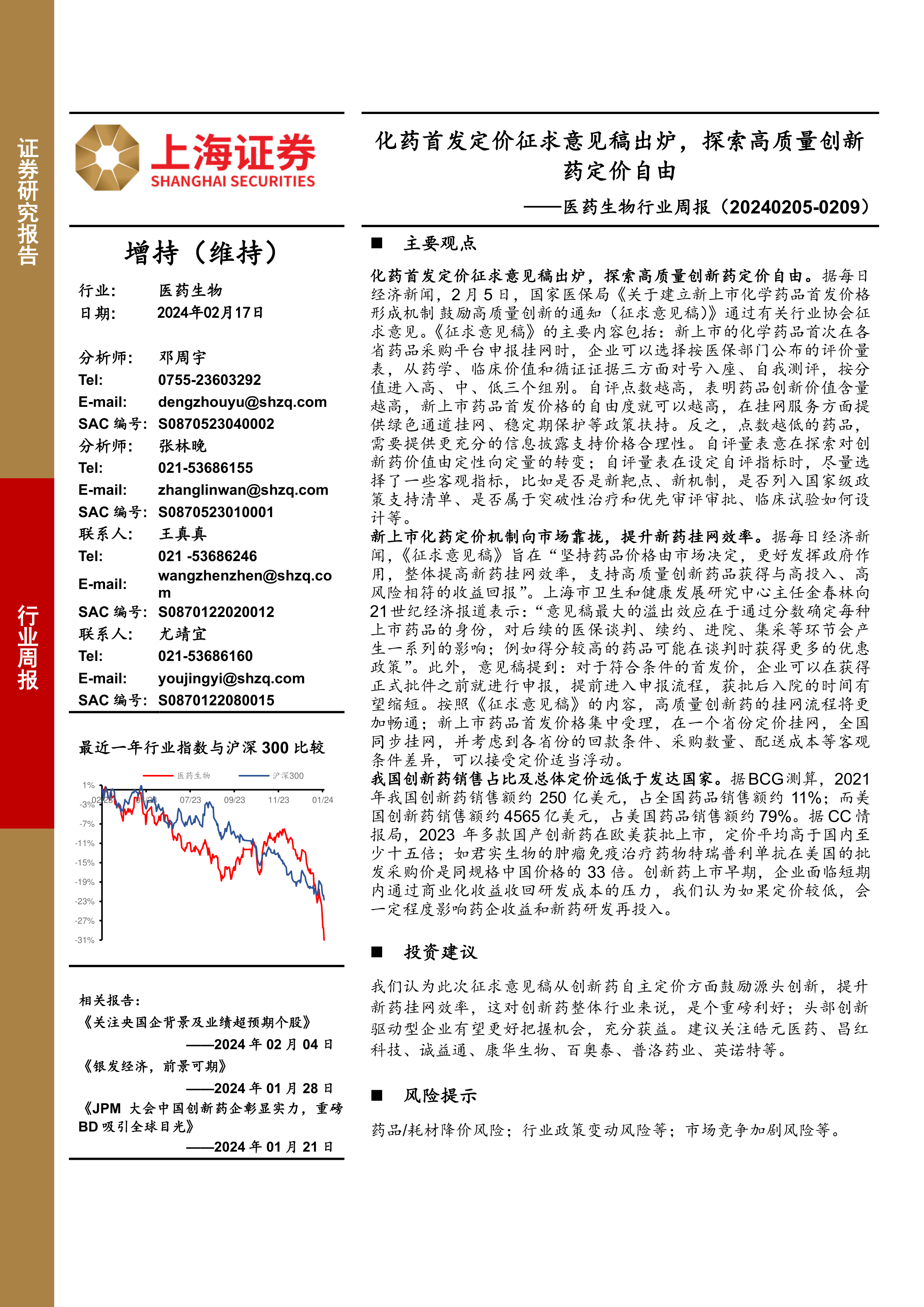 医药生物行业周报:化药首发定价征求意见稿出炉,探索高质量创新药定价自由