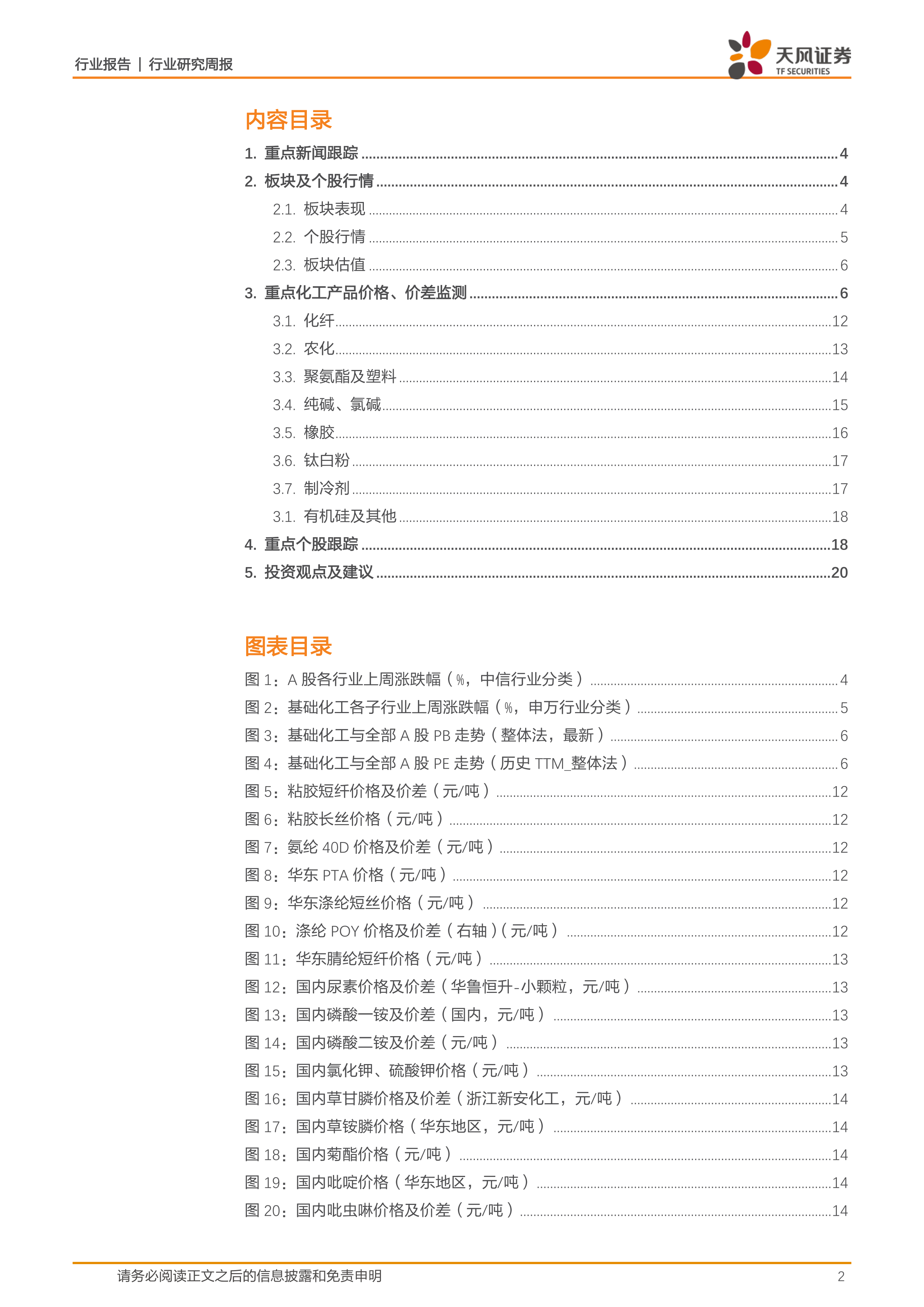 报告包含了大量图表,直观地展现了粘胶短纤、粘胶长丝、氨纶、PTA、涤纶短丝、涤纶POY、腈纶短纤、尿素、磷酸一铵、磷酸二铵、氯化钾、硫酸钾、草甘膦、草铵膦、菊酯、吡啶、吡虫啉、代森锰锌、MDI、TDI、PTMEG、PO、电石法PVC、乙烯法PVC、轻质纯碱、重质纯碱、天然橡胶、丁苯橡胶、顺丁橡胶、炭黑、橡胶助剂、钛白粉、R22、R134a、R125、R32、R410a、有机硅以及分散和活性染料等多种化工产品的价格及价差走势。这些图表为读者提供了更清晰的市场价格变化趋势。