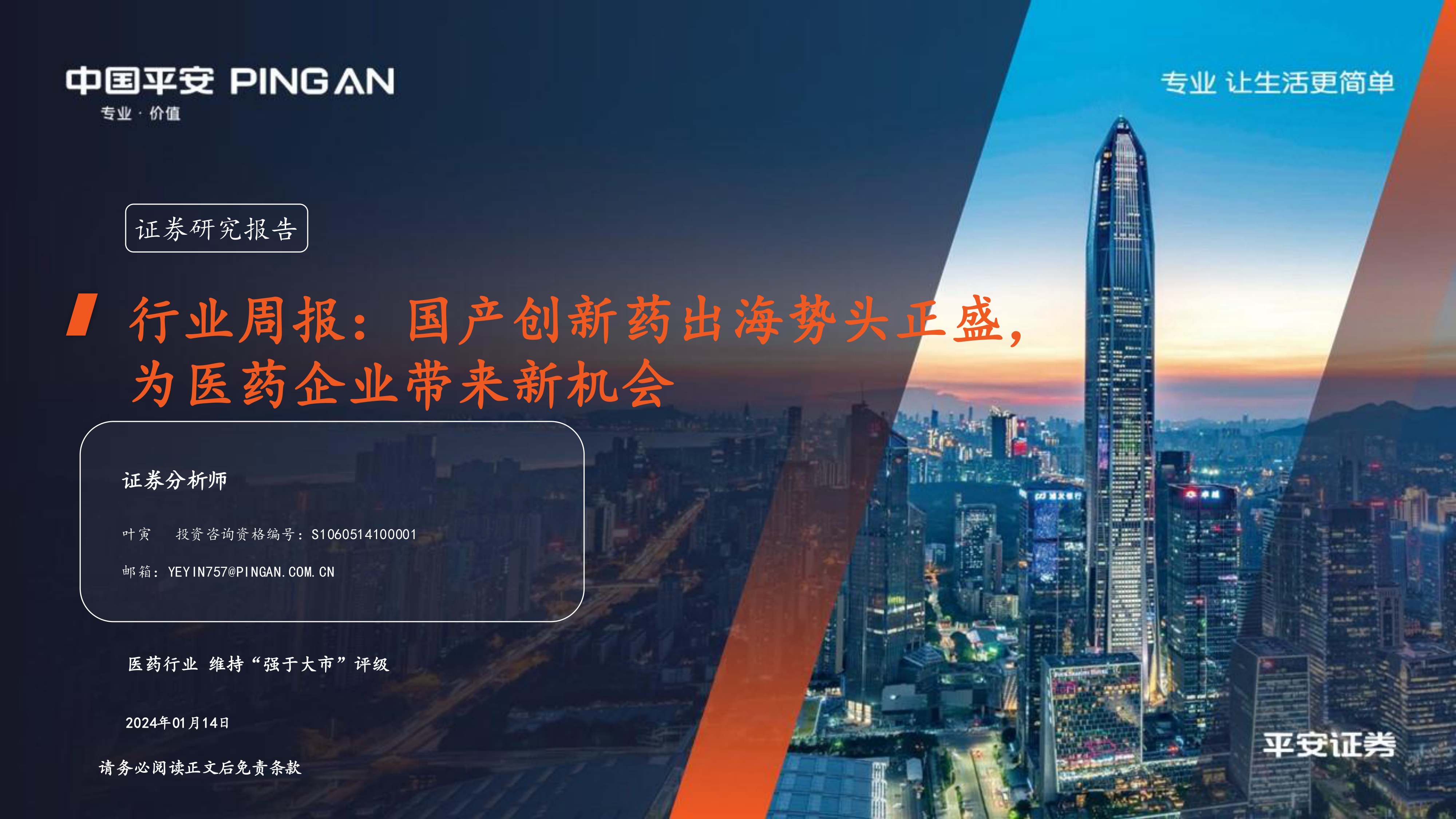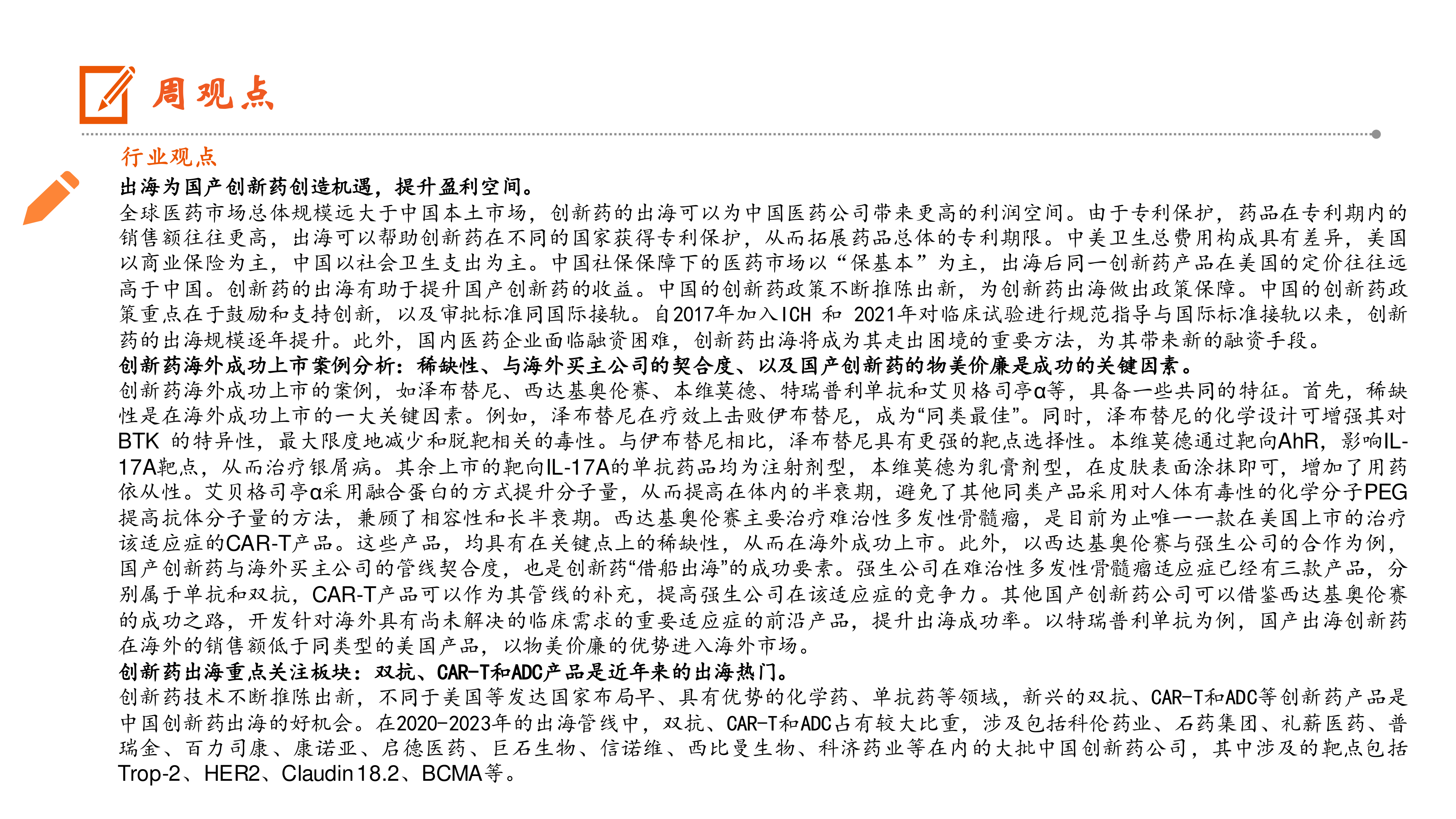 医药行业周报:国产创新药出海势头正盛,为医药企业带来新机会