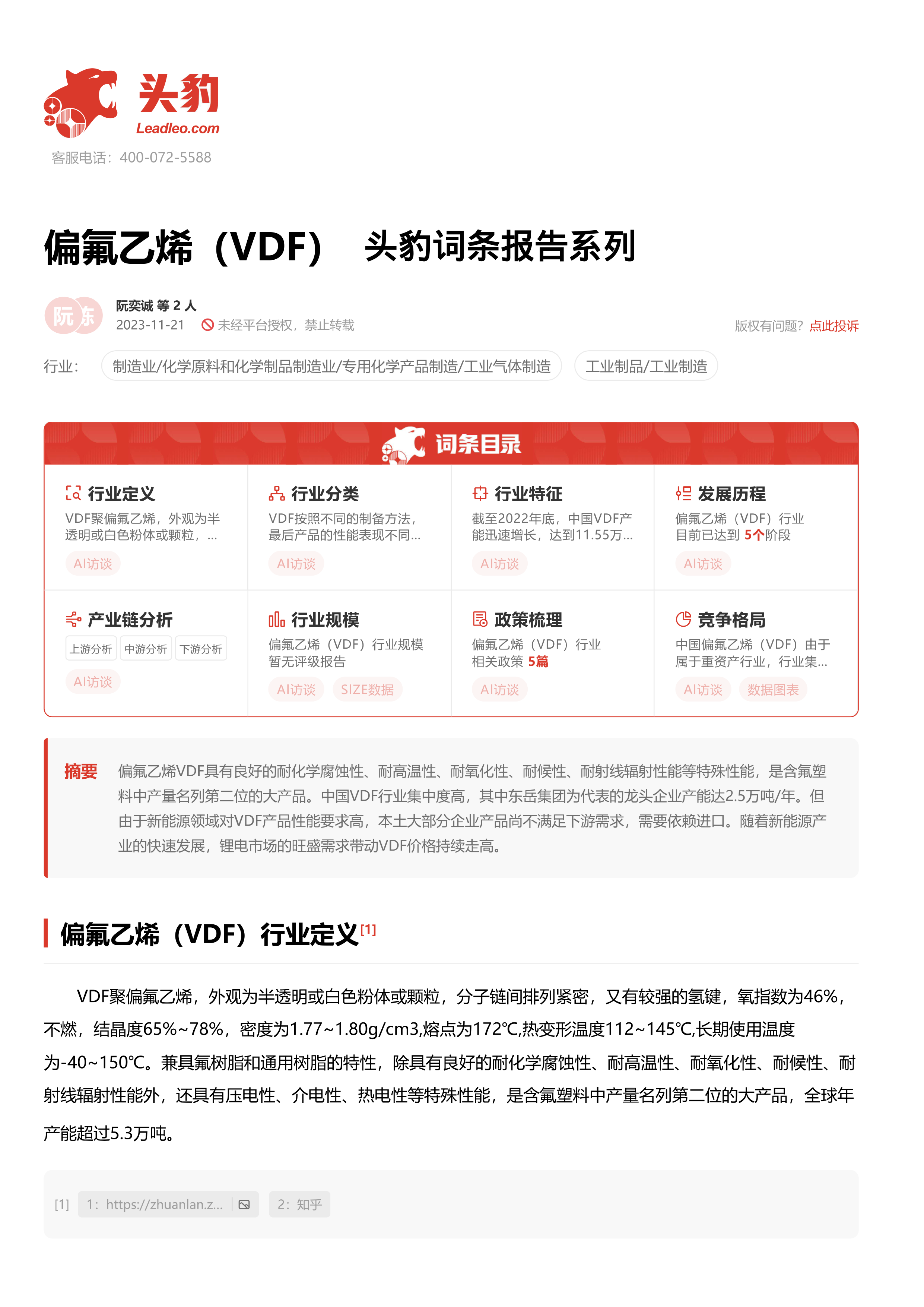 偏氟乙烯(VDF) 头豹词条报告系列