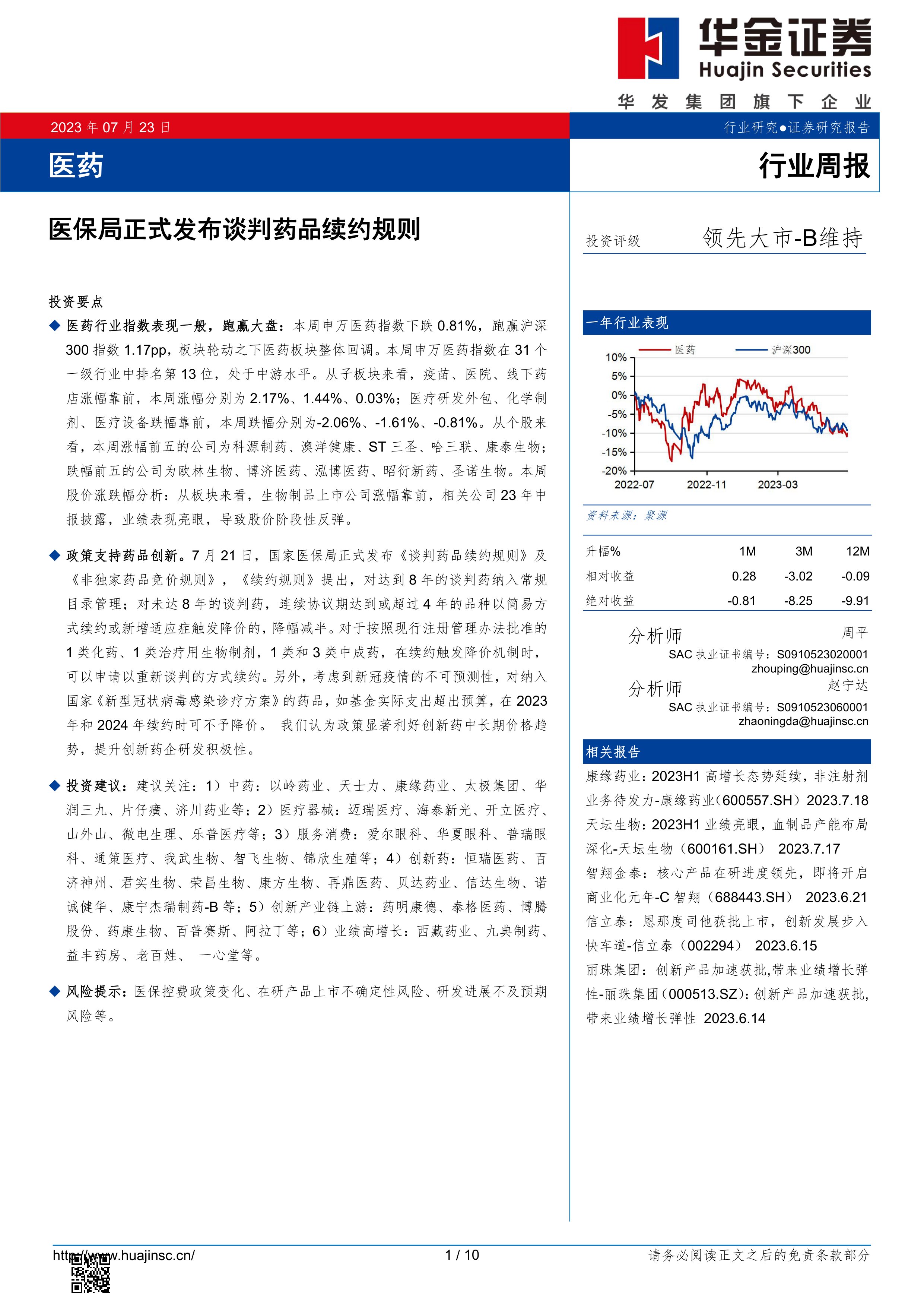 医药行业周报:医保局正式发布谈判药品续约规则