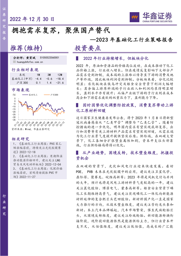 2023年基础化工行业策略报告:拥抱需求复苏,聚焦国产替代