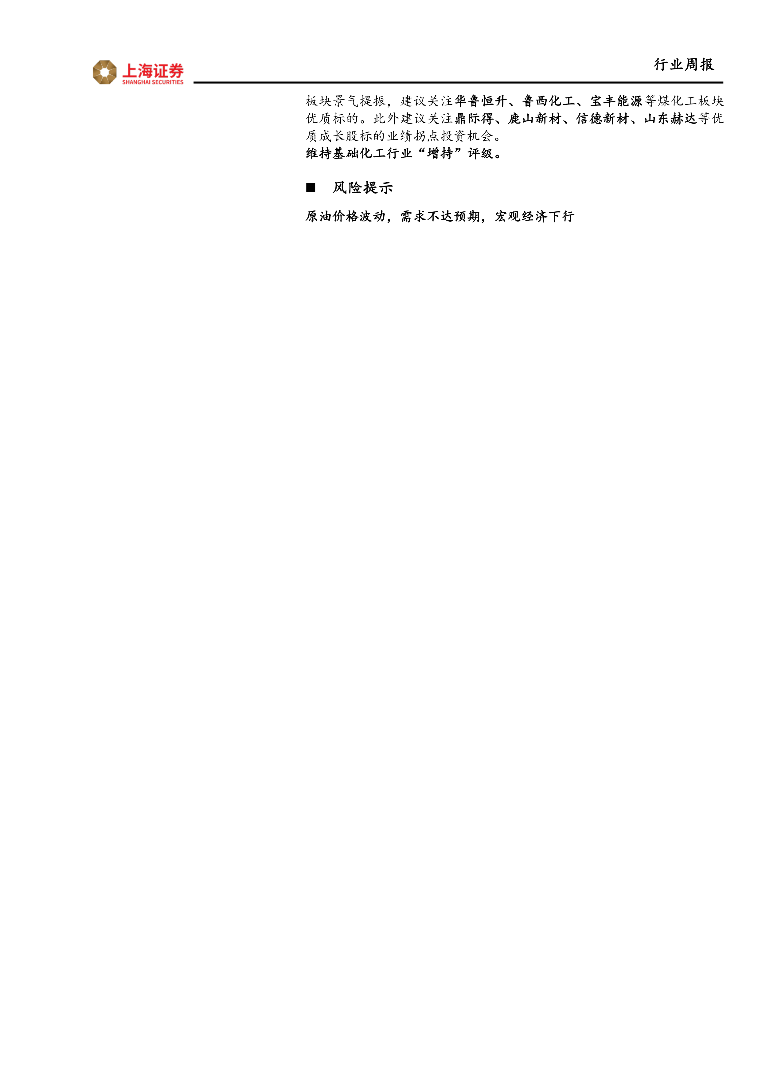 三季度以来涉及多个领域的重磅政策相继发布,为行业景气度提升带来有力支撑,同时新一轮库存周期或正在开启,部分顺周期品种有望迎来持续复苏,当前时点建议关注如下主线:1、制冷剂板块。随着三年基数期结束,三代制冷剂行业供需格局有望迎来再平衡,景气存在反转预期,价格中枢有望持续上行,近期国内配额方案初稿出台,建议关注巨化股份、三美股份、永和股份、昊华科技。2、芳纶板块。芳纶作为三大超强纤维材料之一,下游应用广泛,行业需求保持较快增速,而芳纶纸、芳纶隔膜涂覆技术等新兴应用场景有望进一步打开行业成长空间,建议关注泰和新材。3、地产产业链板块。近期密集政策驱动地产行业复苏,产业链相关品种如纯碱、钛白粉有望迎来边际改善,建议关注龙佰集团、中核钛白、三友化工、山东海化、远兴能源。4、煤化工板块。近期受煤油价格上涨,行业低库,下游需求复苏共同提振,煤化工板块景气提振,建议关注华鲁恒升、鲁西化工、宝丰能源等煤化工板块优质标的。此外建议关注鼎际得、鹿山新材、信德新材、山东赫达等优质成长股标的业绩拐点投资机会。维持基础化工行业“增持”评级。