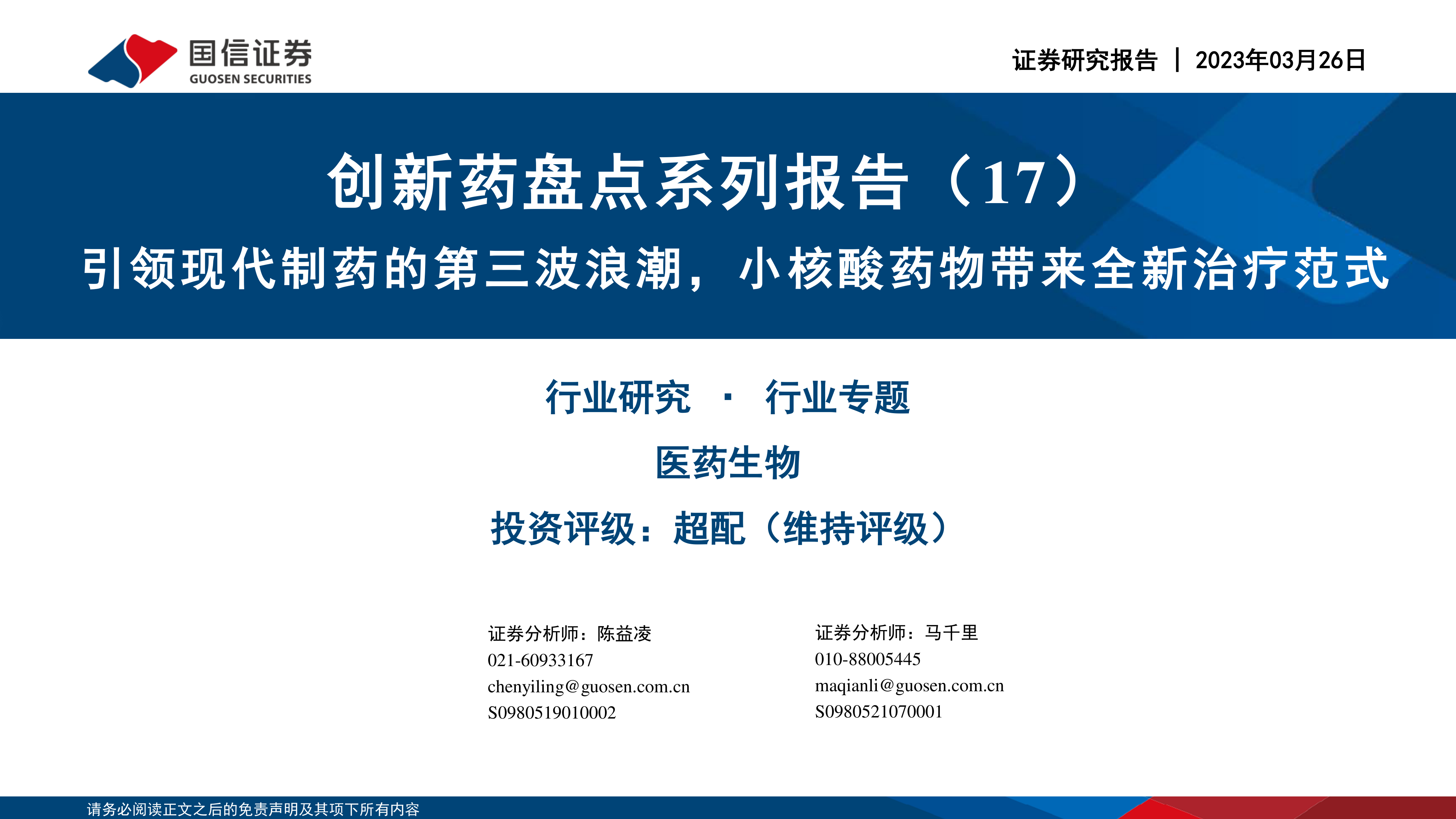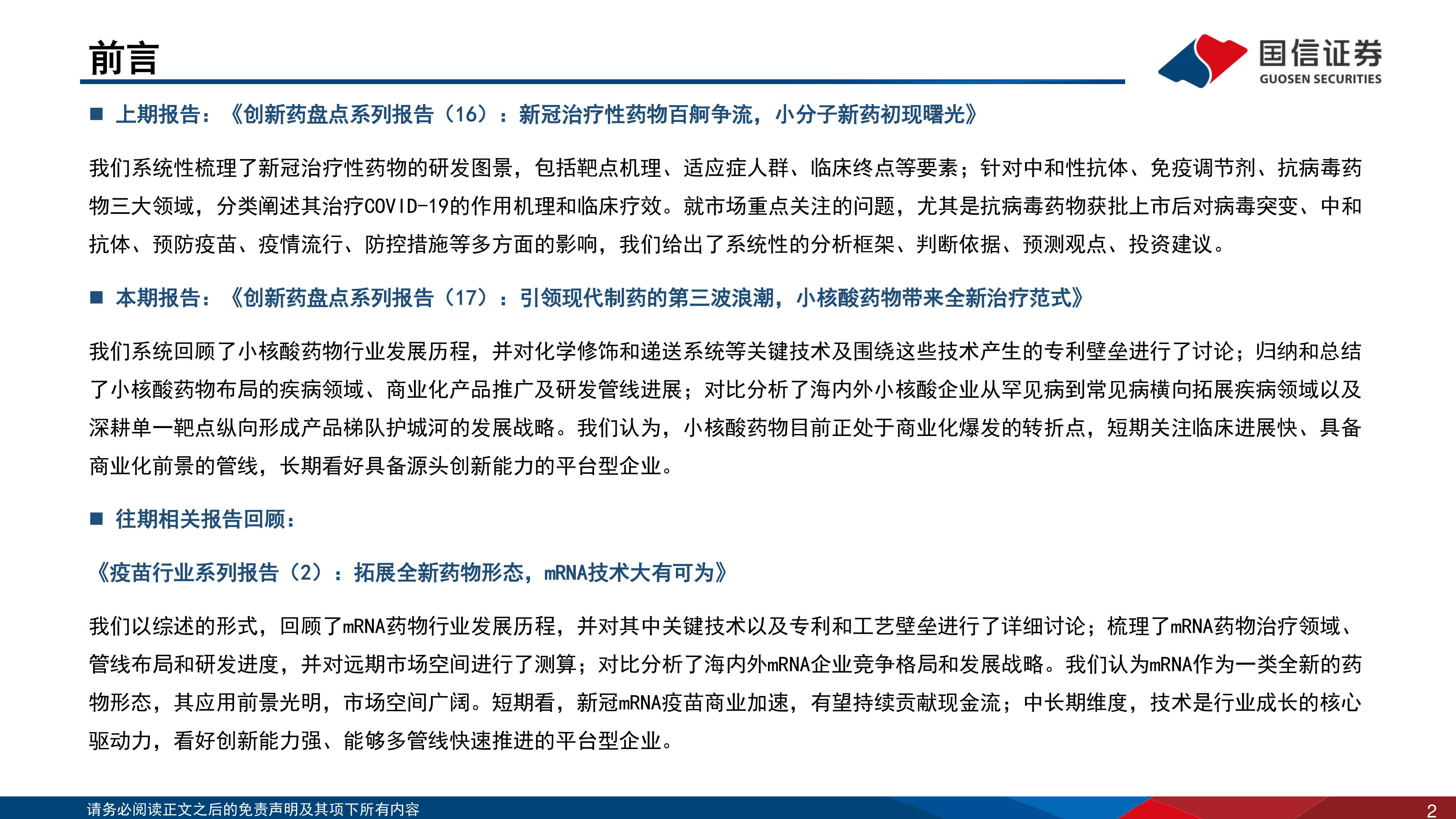 本期报告:《创新药盘点系列报告(17):引领现代制药的第三波浪潮,小核酸药物带来全新治疗范式》