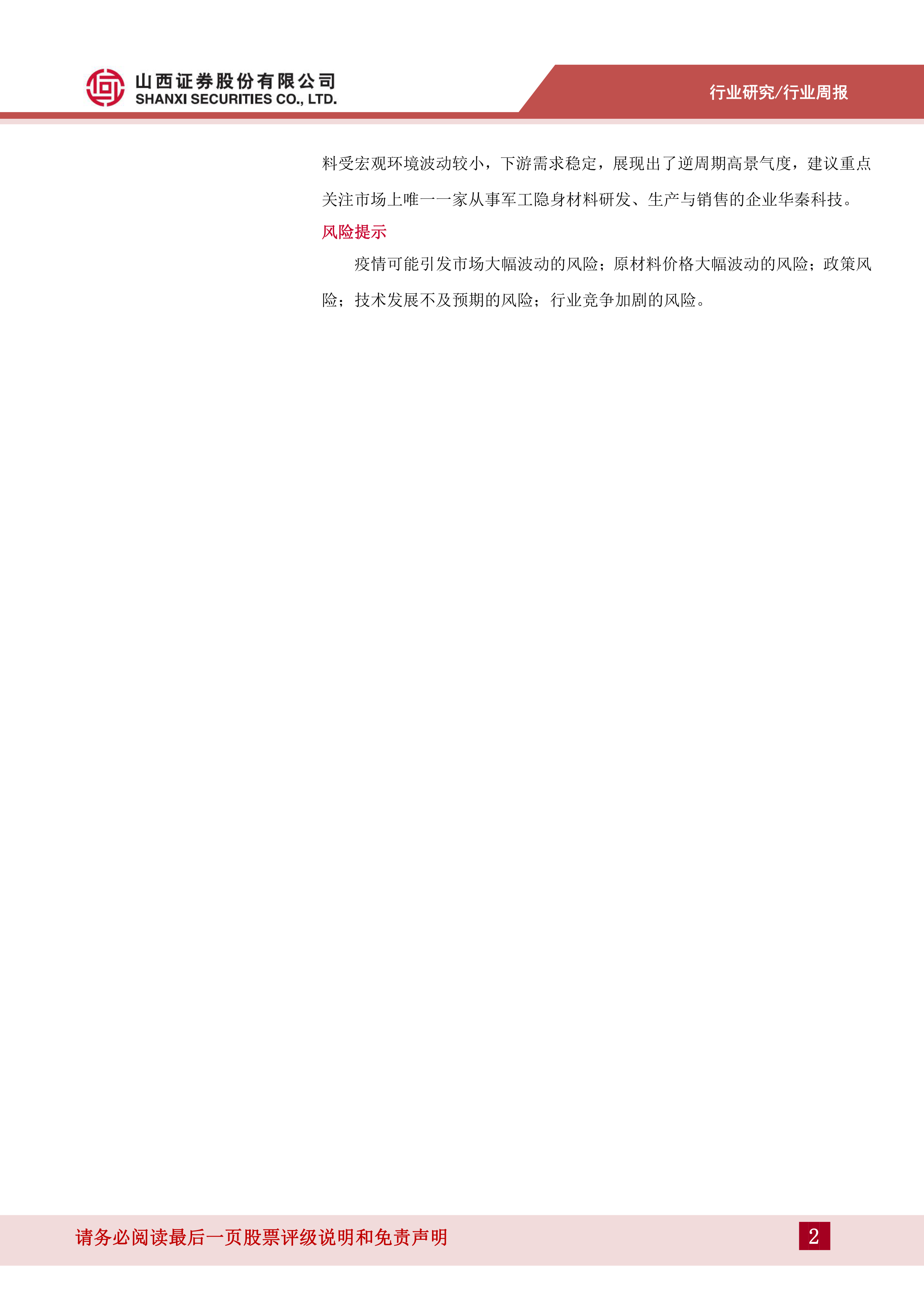 报告最后列出了新材料行业面临的风险,包括疫情影响、原材料价格波动、政策风险、技术发展不及预期以及行业竞争加剧等。