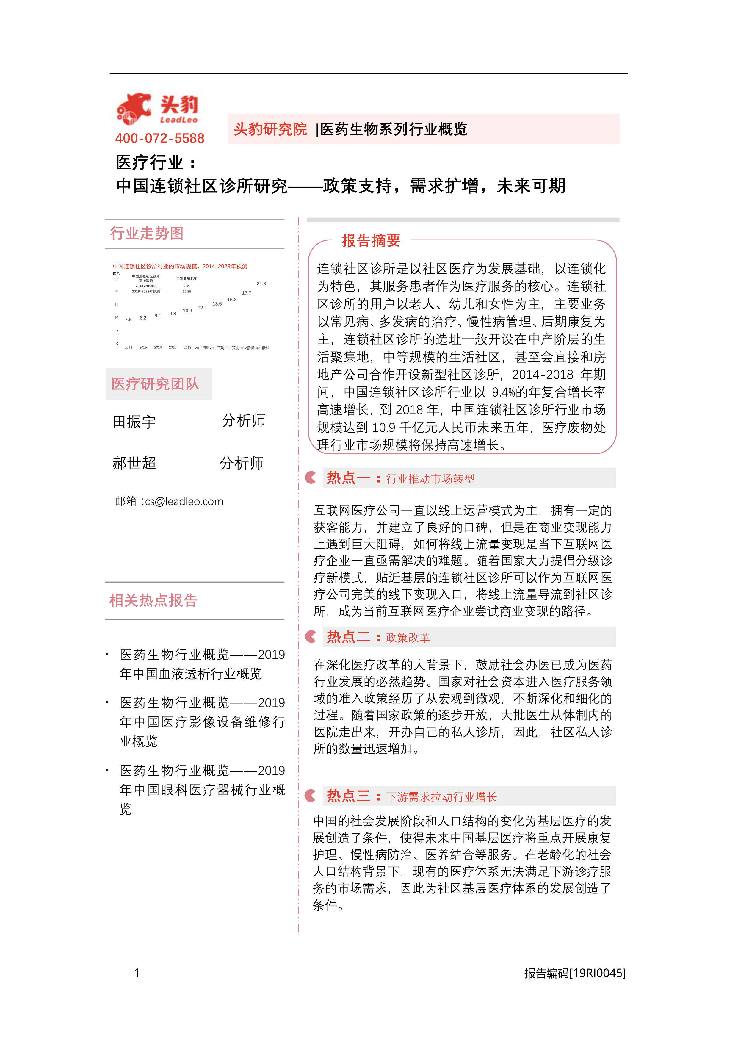 医疗行业:中国连锁社区诊所研究——政策支持,需求扩增,未来可期