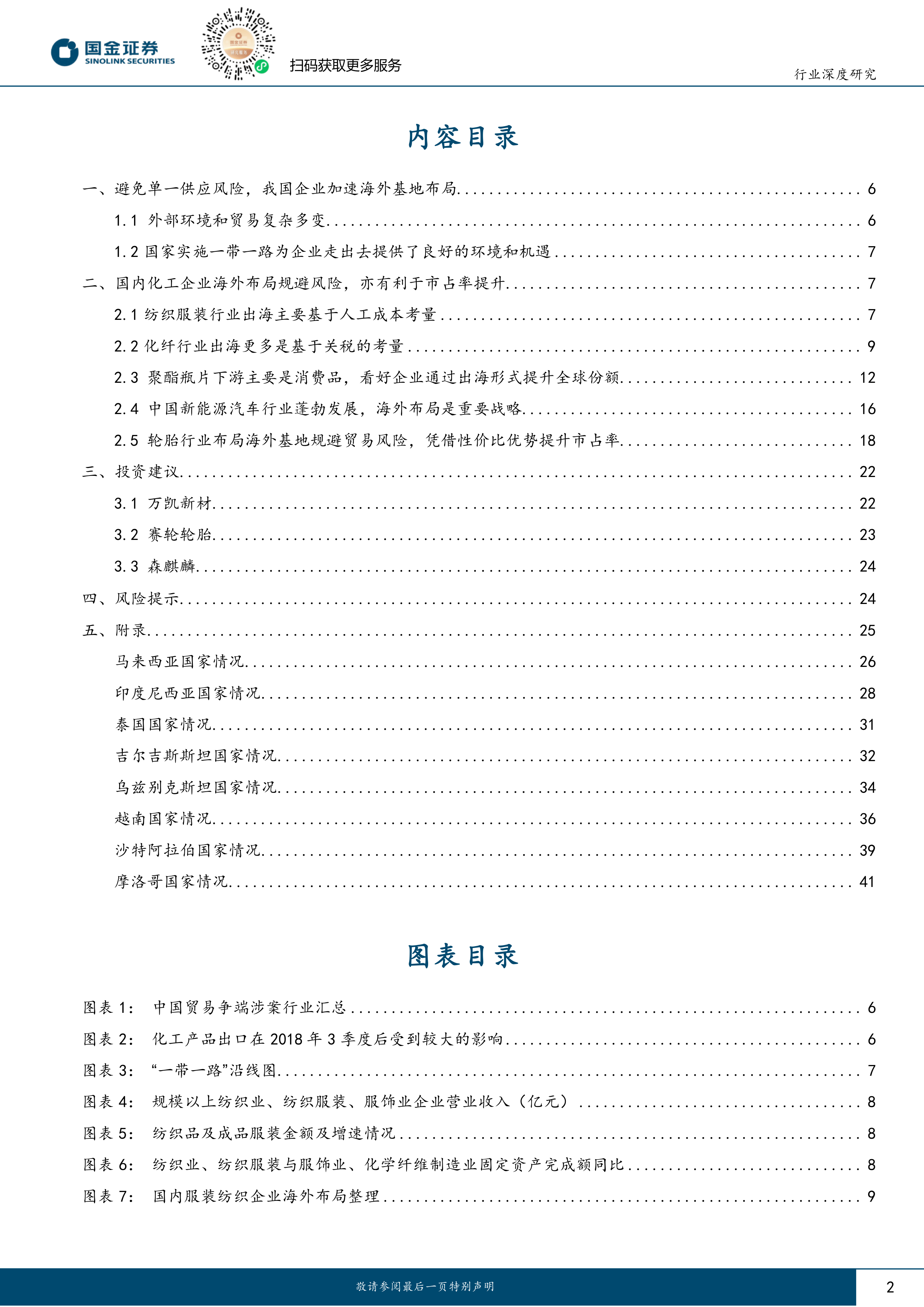 本报告分析了在贸易保护主义抬头背景下,中国化工企业加速海外基地布局的现状和趋势。通过对纺织-聚酯产业链和轮胎产业链的案例分析,以及对“一带一路”沿线部分国家的投资环境分析,报告指出中国化工企业海外布局是应对贸易风险、提升全球竞争力的重要战略。报告最后推荐了万凯新材和赛轮轮胎作为投资标的,并提示了相关投资风险。 报告中大量使用了统计数据和图表,对市场进行了专业、全面的分析。