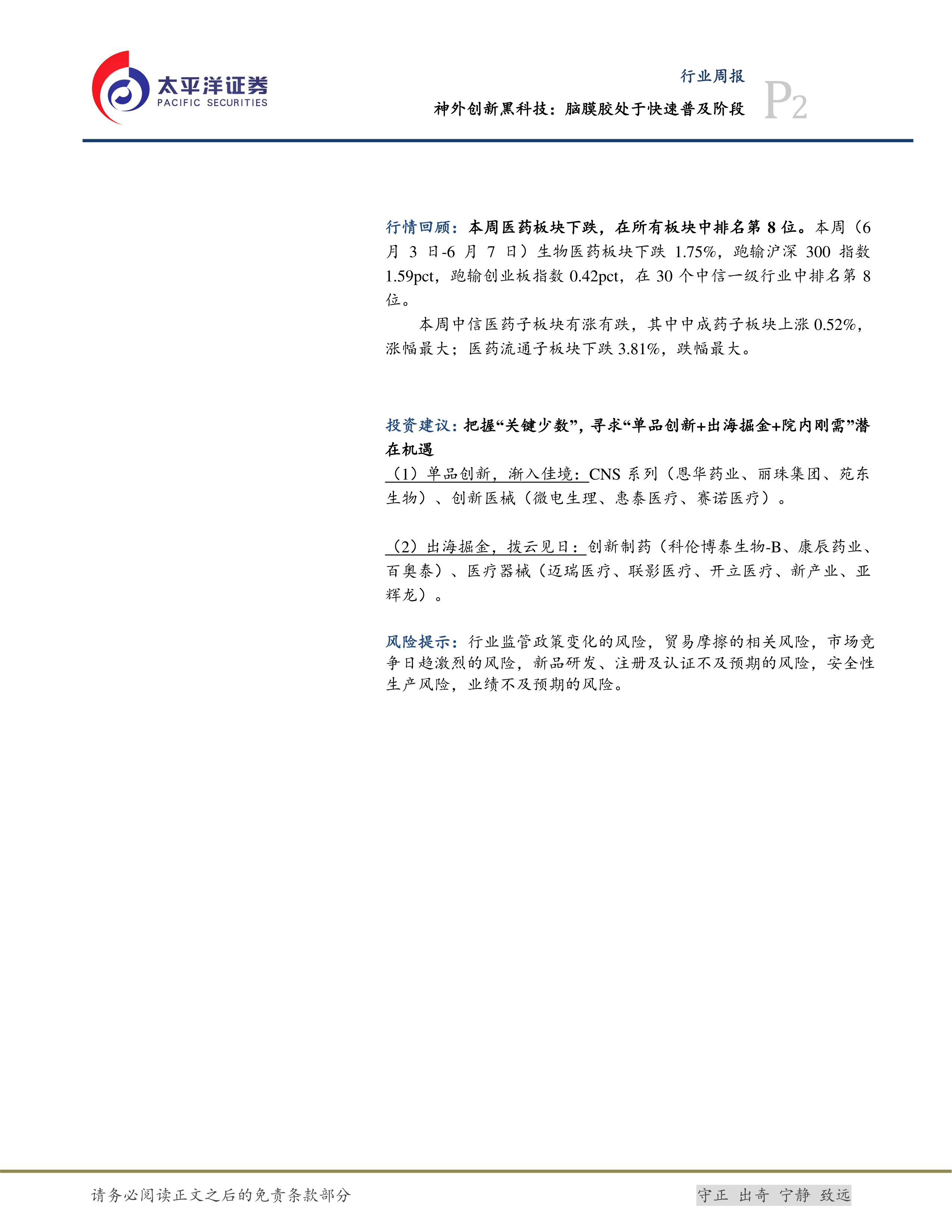 生物医药Ⅱ行业周报:神外创新黑科技,脑膜胶处于快速普及阶段